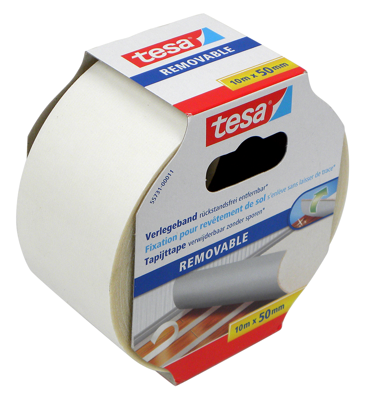 Beidseitiges Klebeband, rückstandsfrei entfernbar, hohe Haftkraft. Breite 50 mm, Länge 10 m.