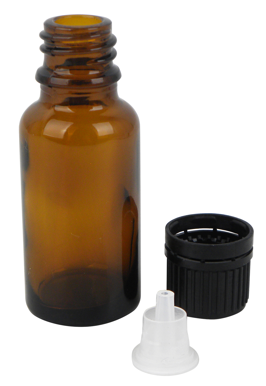 Apothekerfläschchen aus Braunglas inklusive Schraubverschluss mit Tropfeinsatz.