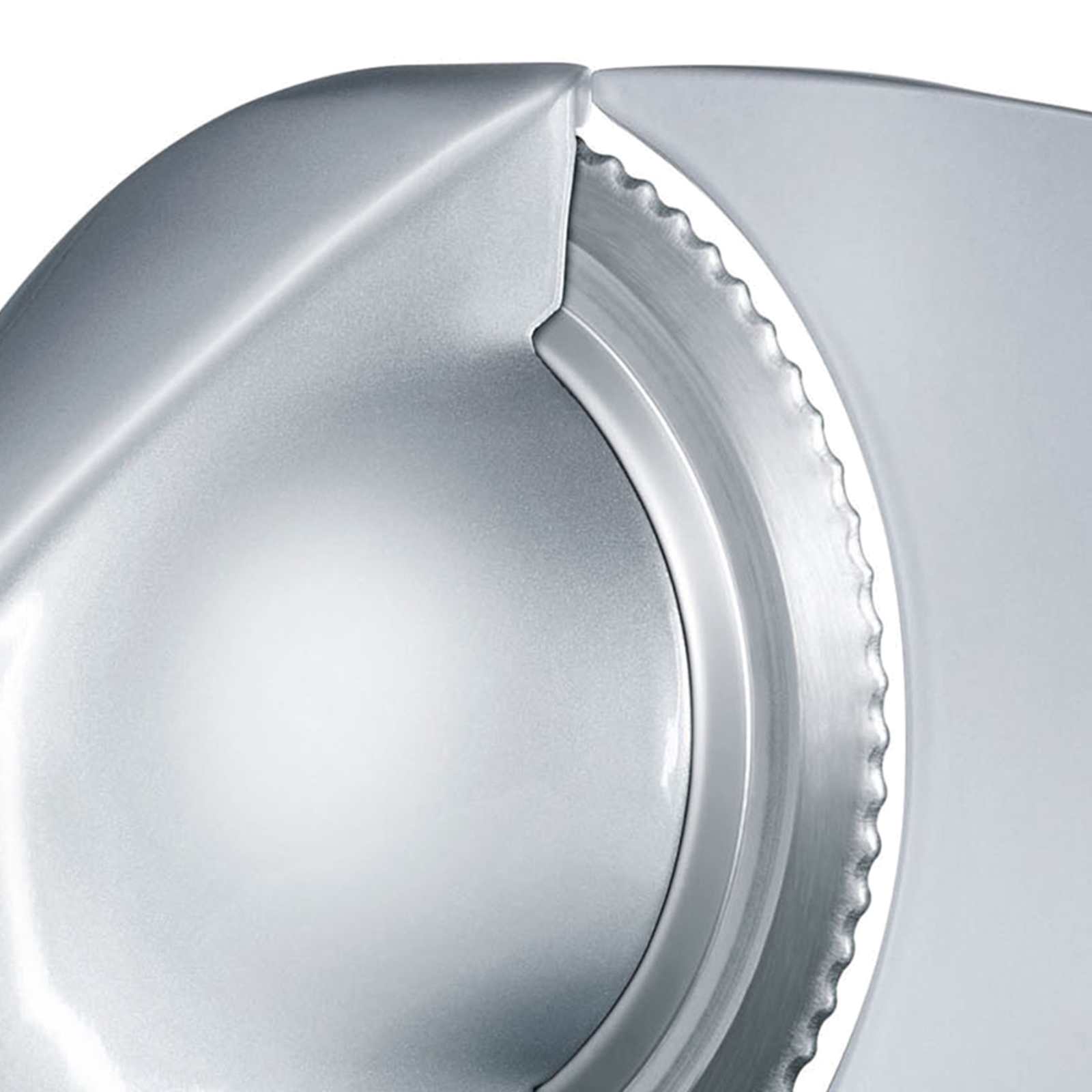 Praktisch: Moment- und Dauerschaltung direkt am Schlitten. Im Lieferumfang enthalten ist zudem ein zweites, glattes Messer für feinere Schnitte.