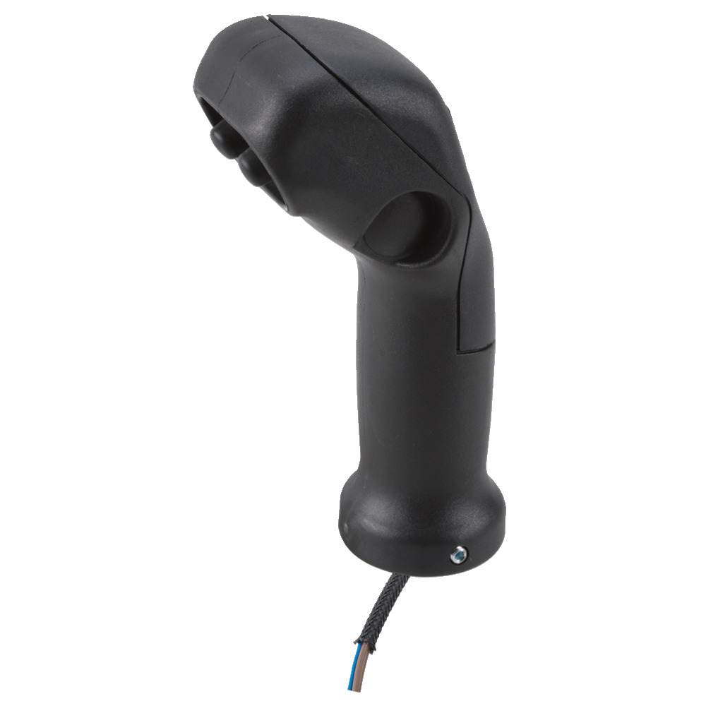 Mit 2 Tastschalter. Zum Aufstecken auf vorhanden Steuerhebel oder auf das Betätigungselement Nr. 34620. Innen-Ø zum Aufstecken 14 mm mit Wurmschraube zum fixieren. Bohrungstiefe 70 mm, Kabellänge 800 mm, Stromstärke max. 12 A.