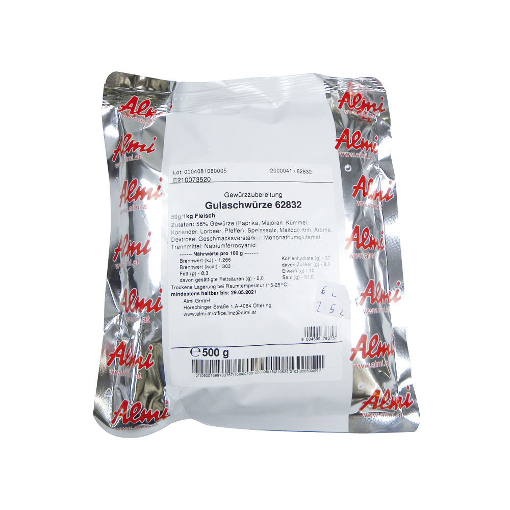 Qualität von höchster Güte, aromageschützt verpackt. Hochwertige Rohstoffe sind die Basis für erstklassige Produktqualität.0,5 kg, 50 g/kg Fleisch.
