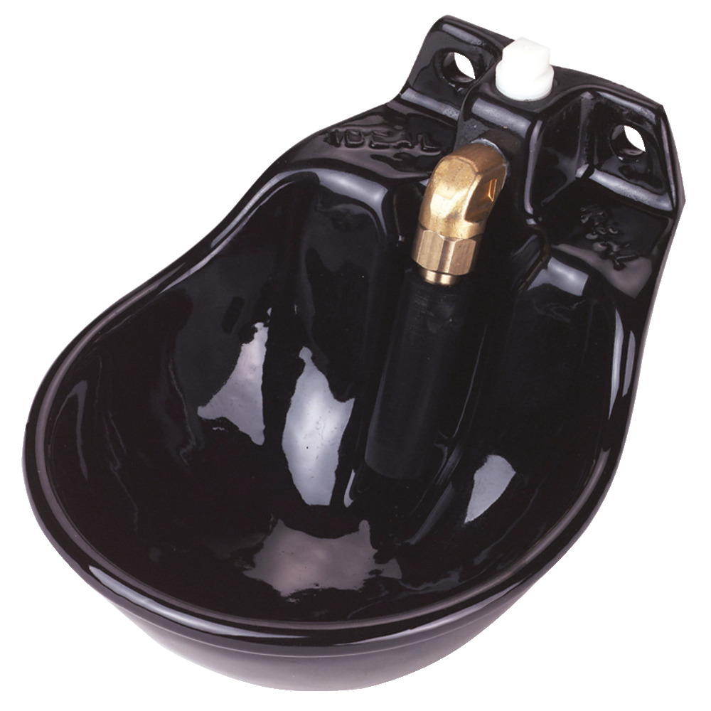 Tränkebecken für Rinder, Kälber und Pferde. 4-Loch-Befestigung, ruhiger Wasserzufluss, kein Spritzen. Schale aus Gusseisen, emailliert. Sehr gutes Preis-Leistungs-Verhältnis, 1/2 Zoll Anschluss.