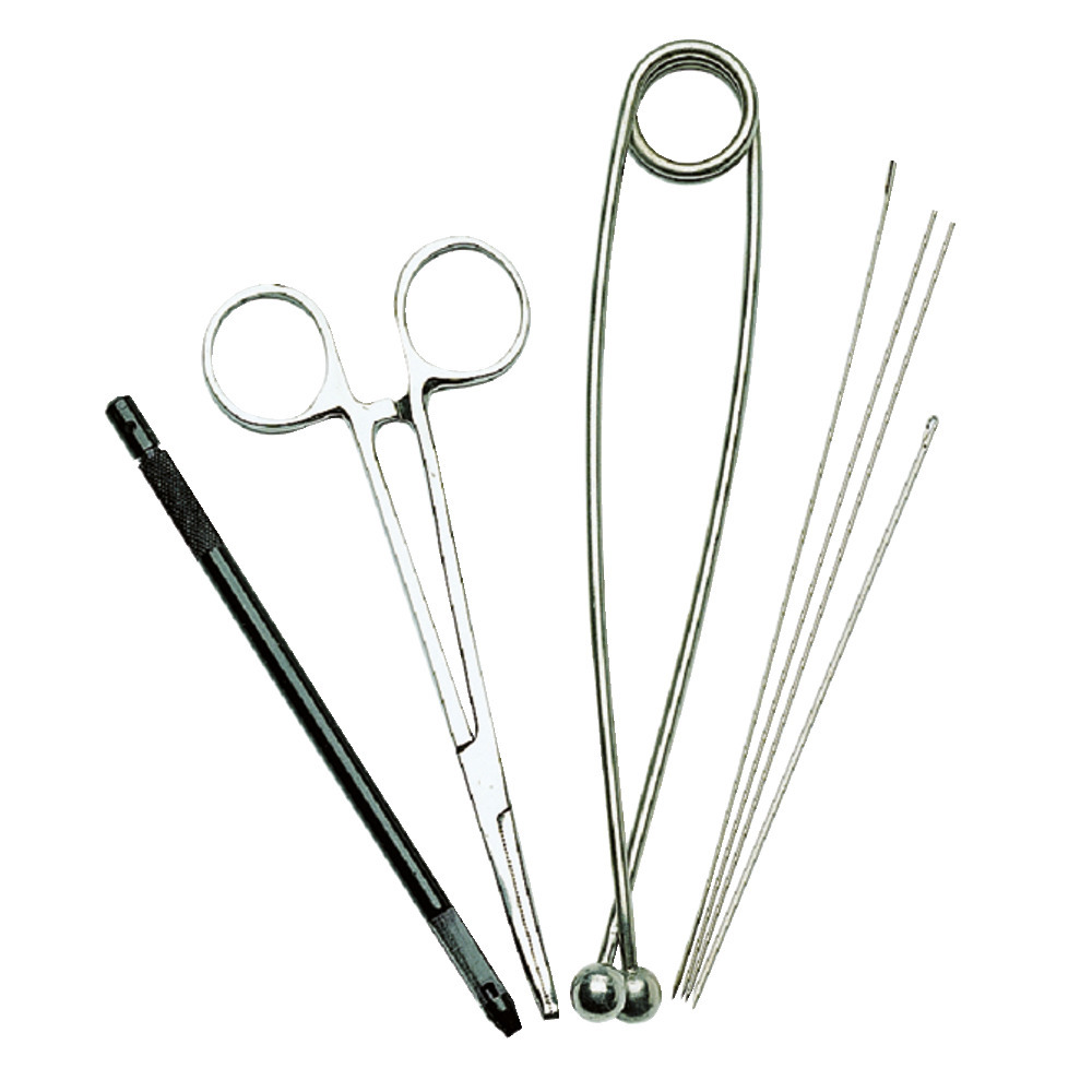 Praktisches Hakenlöseset, bestehend aus: Arterienklemme, Rachensperrer, Hakenlöser, Ködernadel usw. Alles kpl. SB-verpackt