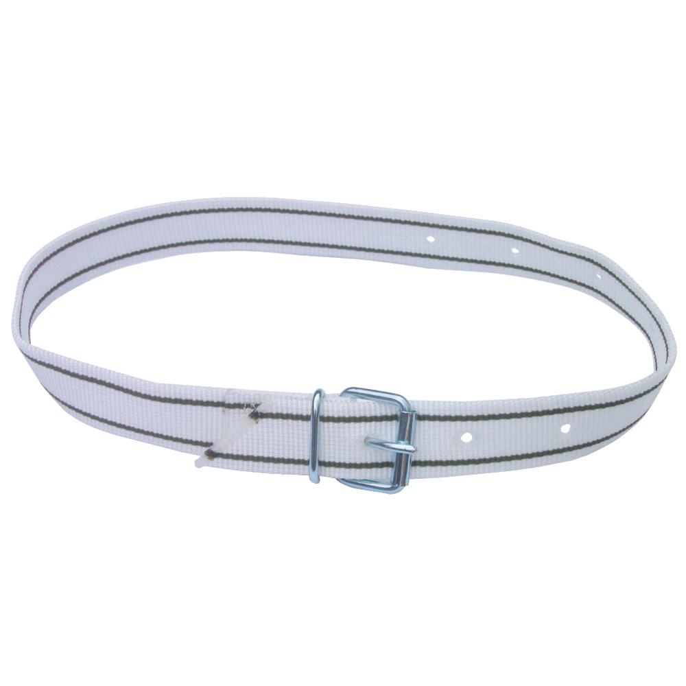 Weiß/schwarz, mit Rollschnalle, ohne Nummern! Gurtbreite 40 mm. Länge 120 cm.