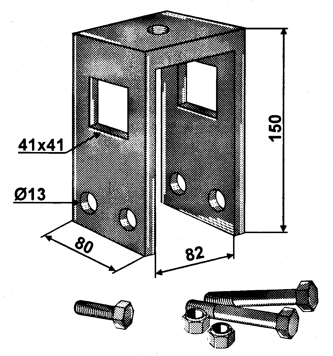 Halter zu Spurlockererzinke für Rahmen 80x80mm, Zinkenmaterial 40x10mm, 40x12mmInklusive Schraubensatz: 2 Stk. M12x130 und 1 Stk. M16x50