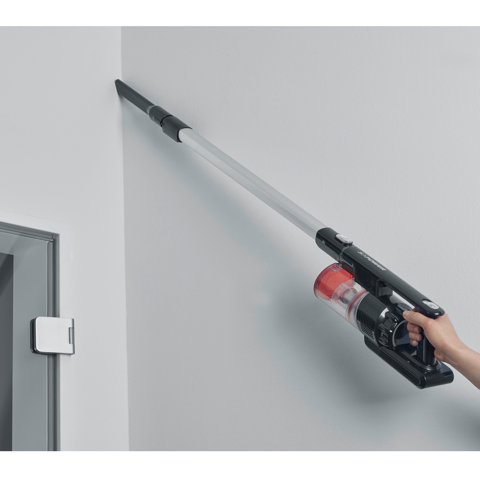 Mit seiner kabellosen Technologie verabschieden Sie sich von der Einschränkung durch Kabel und genießen stattdessen vollkommene Bewegungsfreiheit. Der leistungsstarke Akku sorgt dafür, dass Sie genügend Laufzeit haben, um Ihre gesamte Wohnung oder Ihr Haus auf einmal zu säubern, ohne nachladen zu müssen. Die einfache Umwandlung vom Stiel- zum Handsauger ermöglicht eine nahtlose Reinigungserfahrung, bei der kein Krümel zurückbleibt.