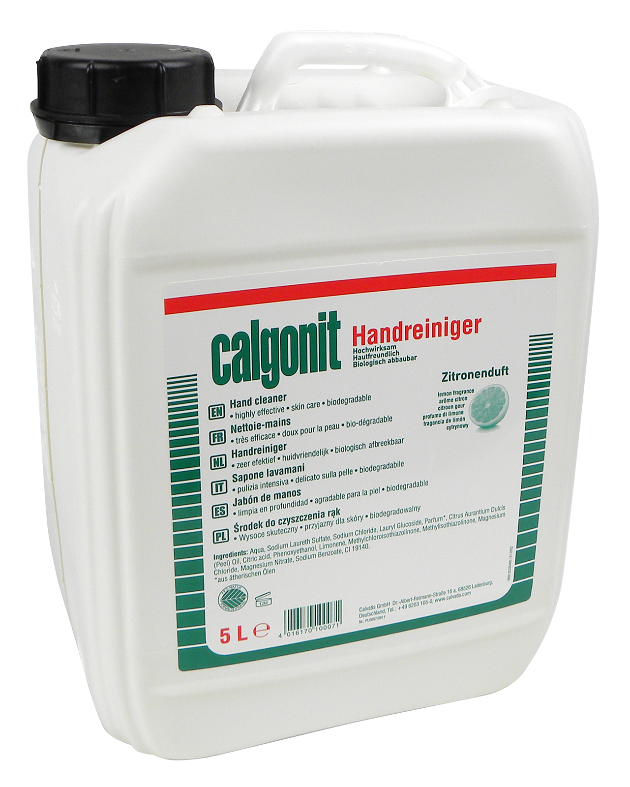 Der Calgonit Handreiniger ist eine hochkonzentrierte flüssige Seife in einem 5 Liter Kanister oder einer praktischen 1-Liter Dosierflasche. Er reinigt gründlich, ist pH-neutral und rückfettend, was eine hervorragende Hautverträglichkeit gewährleistet. Der Handreiniger beseitigt auch hartnäckigen Schmutz und neutralisiert Gerüche wie Chlor- und Güllegerüche. Es werden keine Streifen oder Schmutzränder im Spülbecken hinterlassen und er ist sparsam im Verbrauch. Ideal für die tägliche Handreinigung und Handhygiene.Mit dem 5-Liter Kanister können die 1-Liter Spenderflaschen nachgefüllt werden.
