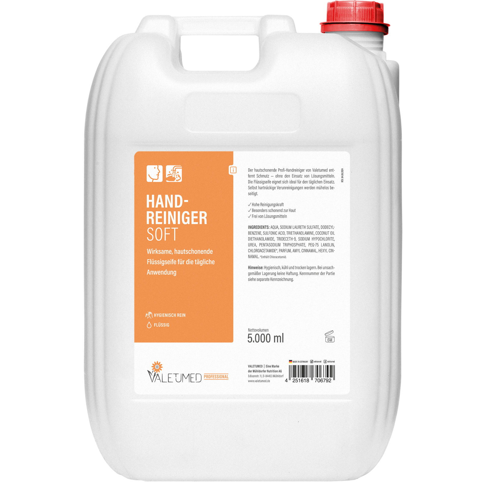 Sanfter Handreiniger für Haushalt und professionelle AnwendungenDieser milde Handreiniger eignet sich ideal für die tägliche Handhygiene im privaten Bereich sowie für den gewerblichen Einsatz in Werkstätten, Betrieben oder Produktionsumgebungen.Er reinigt zuverlässig und gleichzeitig schonend – die Haut wird gründlich von Schmutz befreit, ohne auszutrocknen.Die angenehm duftende Formulierung hinterlässt ein frisches, gepflegtes Hautgefühl nach jeder Anwendung.Zudem ist das Produkt umweltfreundlich und vollständig biologisch abbaubar – für saubere Hände und ein gutes Gewissen.