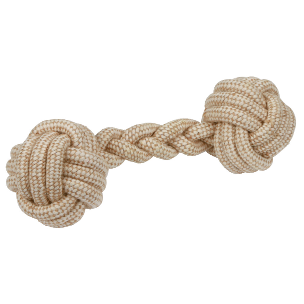 Zum Apportieren oder Knabbern. Reinigt auf spielerische Weise die Zähne und Zahnzwischenräume durch die natürliche Faser. Natürliches, robustes und widerstandsfähiges Material. Aus 50 % Jute und 50 % Baumwolle, zahnfreundlich. Länge: 40 cm, Ø 12 cm