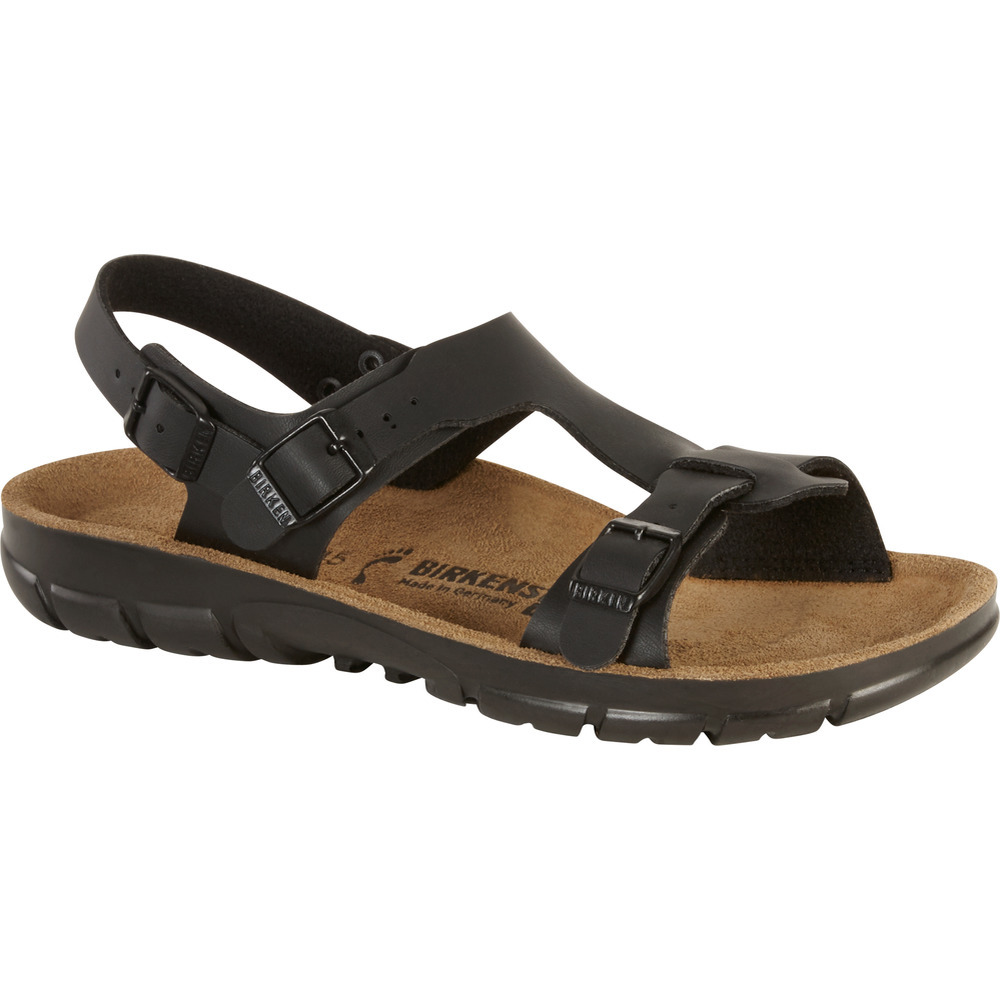 Die feminine Sandale Saragossa vereint die anatomisch unterstützende Form des Original BIRKENSTOCK Fußbetts mit einem zusätzlichen Fersenkissen aus Latex und einer luftgepolsterten Polyurethan-Sohle. Sie zeichnet sich durch Öl- und Fettbeständigkeit aus und eignet sich daher optimal für laufintensive Tätigkeiten in der Landwirtschaft, Gastronomie oder in Pflegeberufen. Größe 36-42.