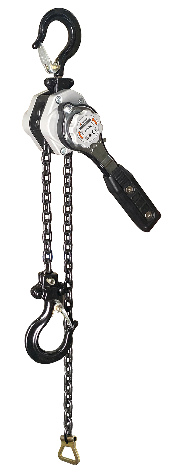 Mit automatischer Lastdruckbremse und Gehäuse aus Ganzstahl in kompakter Bauweise, mit kurzen, verstärktem Handhebel und Freilaufschaltung zum schnellen Durchziehen der unbelasteten hochfesten Kette.Ratschenhebel in jeder Lage im Eingriff. Trag- und Lasthaken mit Sicherheitsbügel. Gewicht nur 2,5 kg.Ideal für Montagearbeiten - leicht zu bedienen und zu verstauen!Hubhöhe 1,5 m, Tragfähigkeit 250 kg.