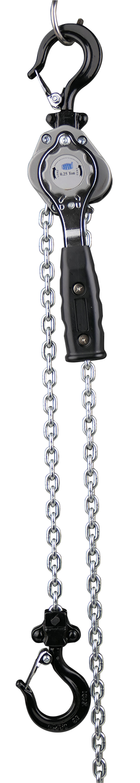 Robuster Handhebelzug mit einer maximalen Tragkraft von 250kg und einer Hubhöhe von 3,0m. Durch sein geringes Gewicht und die kompakte Bauweise bietet der Kettenzug einen vielseitigen Einsatzbereich für Hebe- und Zugaufgaben. Der Hebelzug ist perfekt für den Einsatz in Werkstätten, auf Baustellen und in engen Arbeitsbereichen, wo eine sichere Lastaufnahme gefordert ist.Der Hebelzug überzeugt mit robusten Lasthaken, einer in Europa gefertigten Lastkette und einer doppelten Verriegelung für mehr Sicherheit. Die Lastdruckbremse wird automatisch aktiviert sobald eine Last an den Haken aufgenommen wird.Mit dem Umschalthebel am Handhebel können sie 3 Arbeitsstellungen schalten:U - LasthebenD - Last senkenN - Mittelstellung - Kettenfreilauf, schnelles Durchziehen der Kette mit dem Handrad oder von Hand aus möglich.Durch den Kettenfreilauf ist der Kettenzug einfach und schnell auf die gewünschte Arbeitsposition einstellbar. Die Lasthaken sind drehbar um eine möglichst flexible Aufhängung an den Befestigungspunkten zu ermöglichen. Durch das feinverzahnte Getriebe ist nur eine geringe Handhebelkraft von 206N erforderlich.Die Lieferung erfolgt in einer praktischen Tasche für die Aufbewahrung und den Transport.