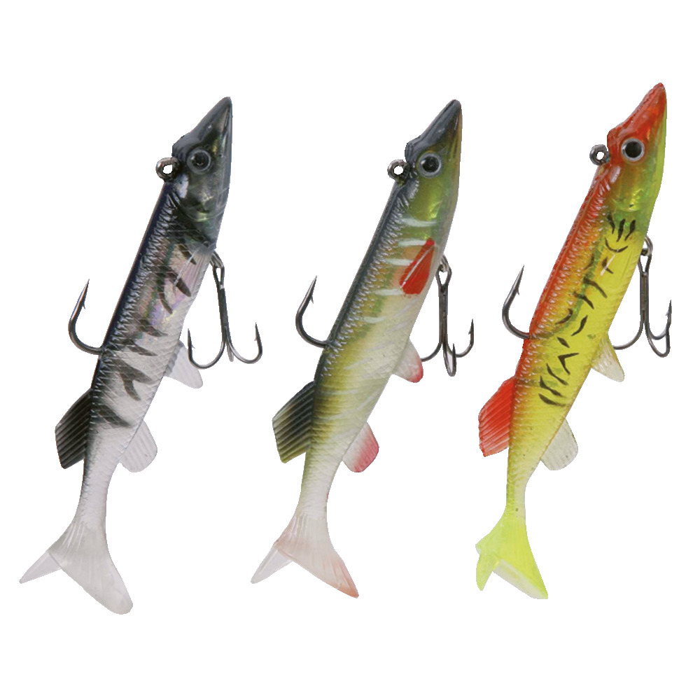 3 Stk. spezielles Set, das die Beute des Hechtes perfekt imitiert. Der kleine Hecht im Set, zielt auf das Revierverhalten der Hechte ab.