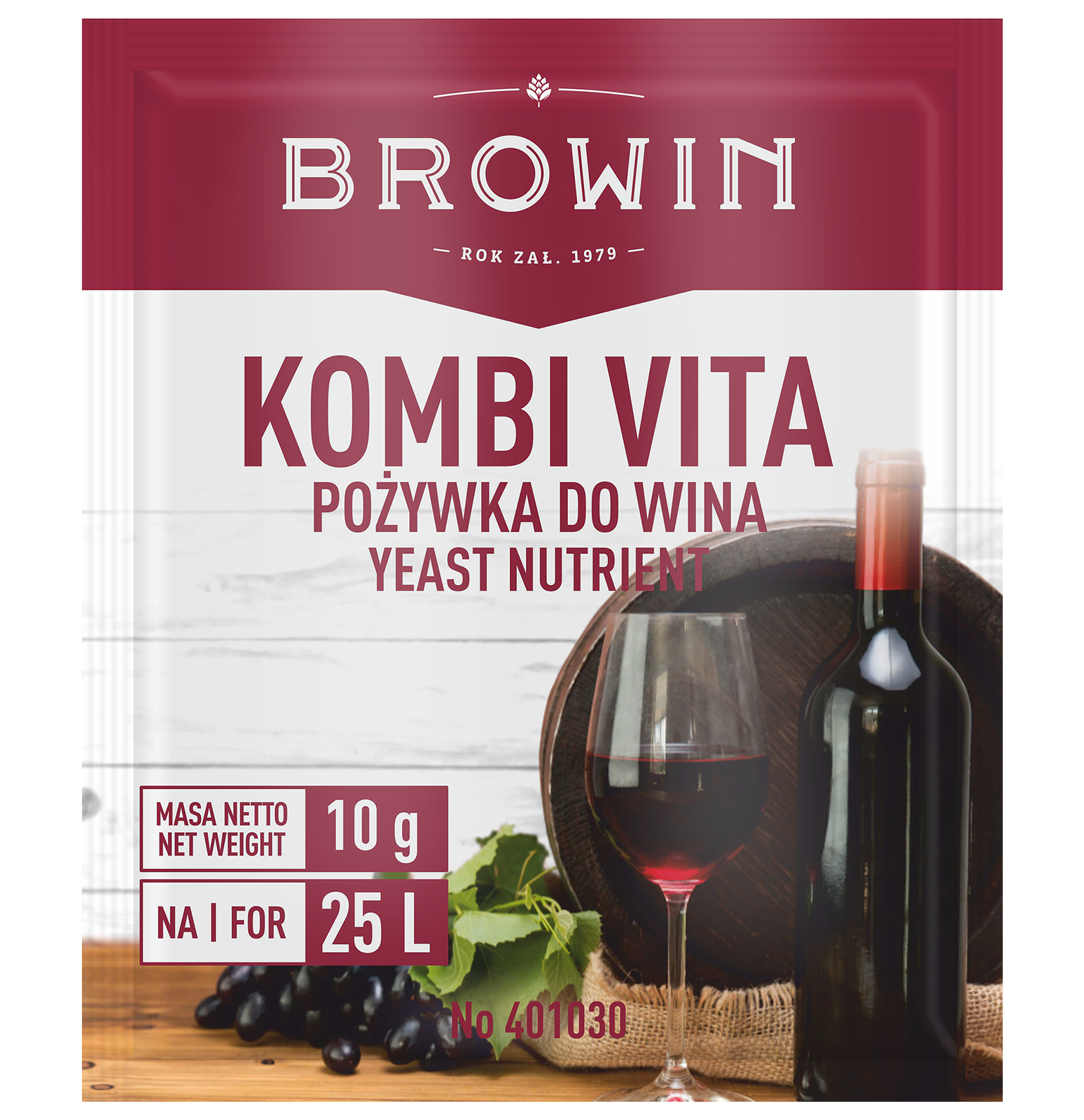 Das Hefenährsalz Kombi Vita ist hervorragend geeignet für Weinliebhaber, die den Gärungsprozess unterstützen möchten sowie aus dem Ansatz das Maximum an Aroma und Geschmack gewinnen wollen.Das Nährsalz ist eine Komposition aus Diammoniumhydrogenphosphat (DAP), Vitamin B1 sowie inaktiven Komponenten der Hefezellen, die wertvolle organische Substanzen enthalten, darunter Vitamine aus der B-Gruppe.DAP ist für Weinhefe eine leicht assimilierbare Quelle an Stickstoff und Phosphor.Vitamin B1 dient als Gärungsaktivierer, beeinflusst positiv den Geschmack und das Aroma des Weins.Die Hefezellwände beschleunigen die Vervielfältigung der Biomasse und sind eine wertvolle Quelle an Sterinen, Fettsäuren sowie Spurenelementen - Magnesium und Mangan.Sie absorbieren gärungshemmende Substanzen. Sie beeinflussen positiv die Struktur und das Aroma des Weins.Das Hefenährsalz Kombi Vita empfehlen wir für die Herstellung aller Weinsorten: Obst-, Trauben-, Getreide- und Blütenwein.Anwendung:Im Verhältnis von 1 g Hefenährsalz Kombi Vita auf 1,5-2,5 L Most verwenden. Der Beutelinhalt reicht für 15-25 L Weinansatz.Achtung:Geben Sie das Hefenährsalz Kombi Vita in drei gleichen Portionen hinzu: I - vor dem Impfen mit Hefe, II - nach 2-3 Tagen Gärung, III - wenn der Blg im Most unter 8-12 fällt.Jede dieser Portionen muss in 100 ml Most aufgelöst und anschließend in den Weinansatz gerührt werden.Fügen Sie das Hefenährsalz nicht direkt zur Hefeimpfung hinzu!