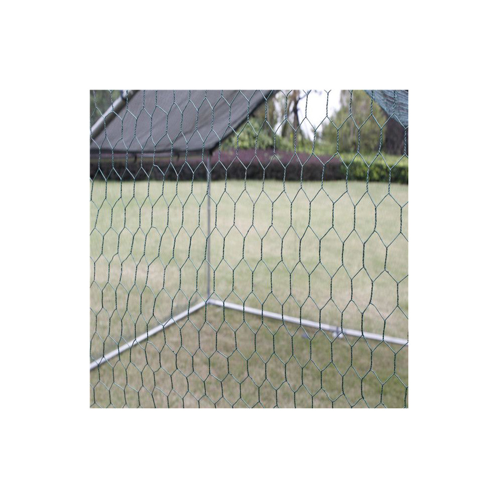 Einfaches modulares Stecksystem, mit verzinkten PVC ummantelten Drahtgeflecht, inkl. 1 Tür für leichten Zugang, inkl. UV-beständiger Sonnenschutz-Folie und Befestigungsmaterial.