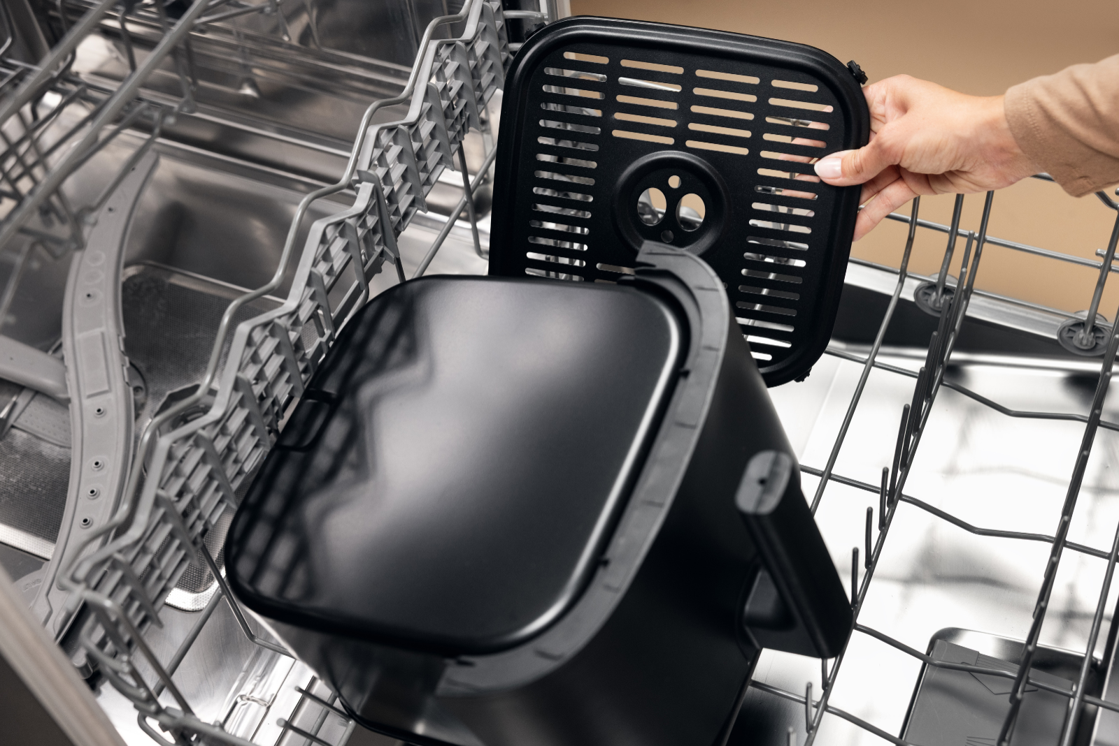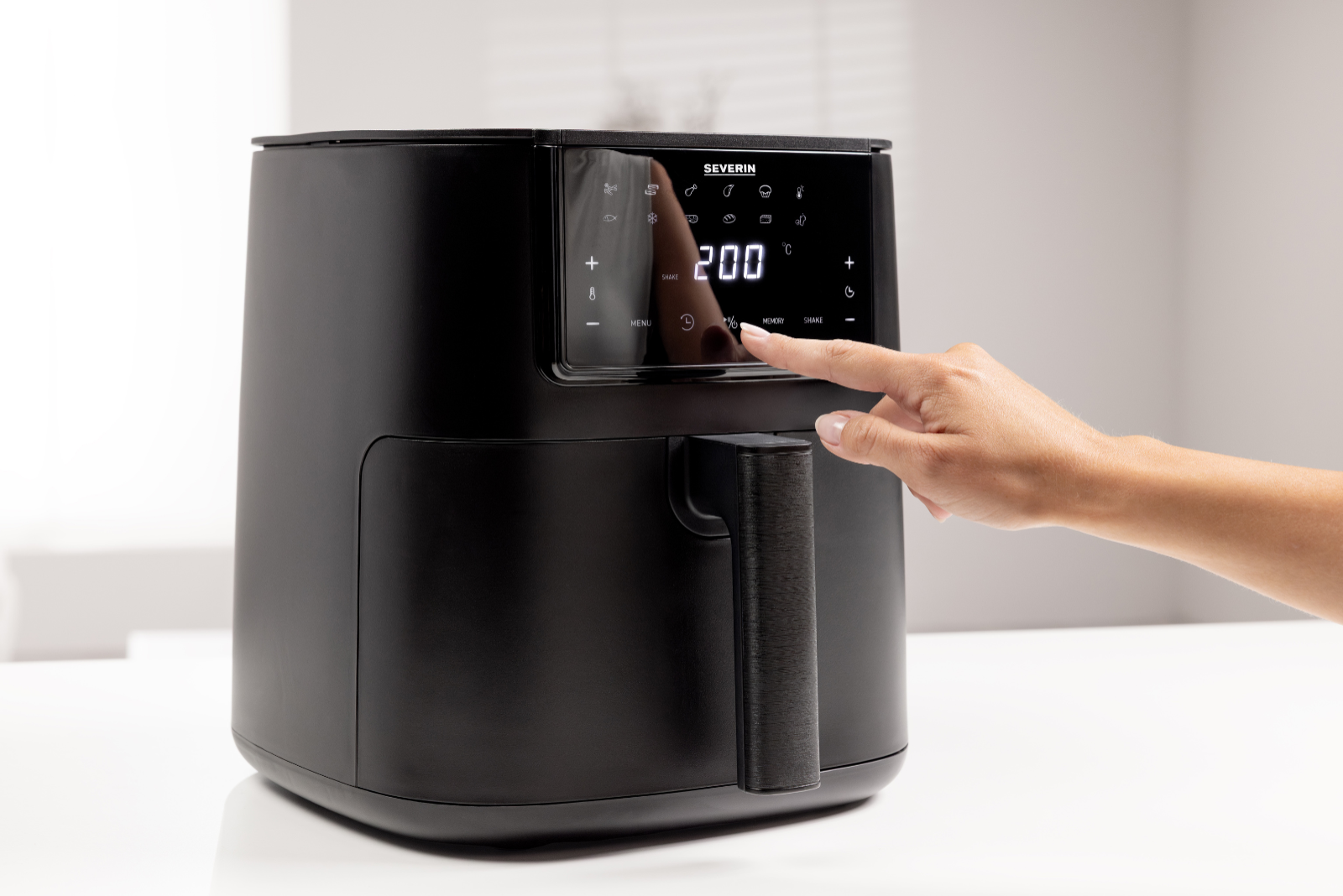 Single XXL – gesund, knusprig und extra viel Platz. Mit 7 Litern Volumen bietet die Black Line Single XXL viel Raum für Lieblingsgerichte – ideal für Familien, Meal-Prep oder großen Hunger. Ob knuspriges Gemüse, fettarmes Fleisch oder frische Brötchen: Die Heißluft-Technologie sorgt für gleichmäßige Bräunung – ganz ohne Öl. Dank kurzer Aufheizzeit sparen Sie Zeit im Alltag. Die Touch-Bedienung ist einfach und selbsterklärend. Praktisch: Die Shake-Reminder-Funktion erinnert automatisch ans Schütteln – für perfekte Ergebnisse. Die Reinigung geht leicht von der Hand: Alle herausnehmbaren Teile sind spülmaschinengeeignet, die Antihaftbeschichtung kommt ohne PTFE aus. Ideal für alle, die gesund und bequem kochen möchten. Frittierkorb mit riesigem Fassungsvermögen