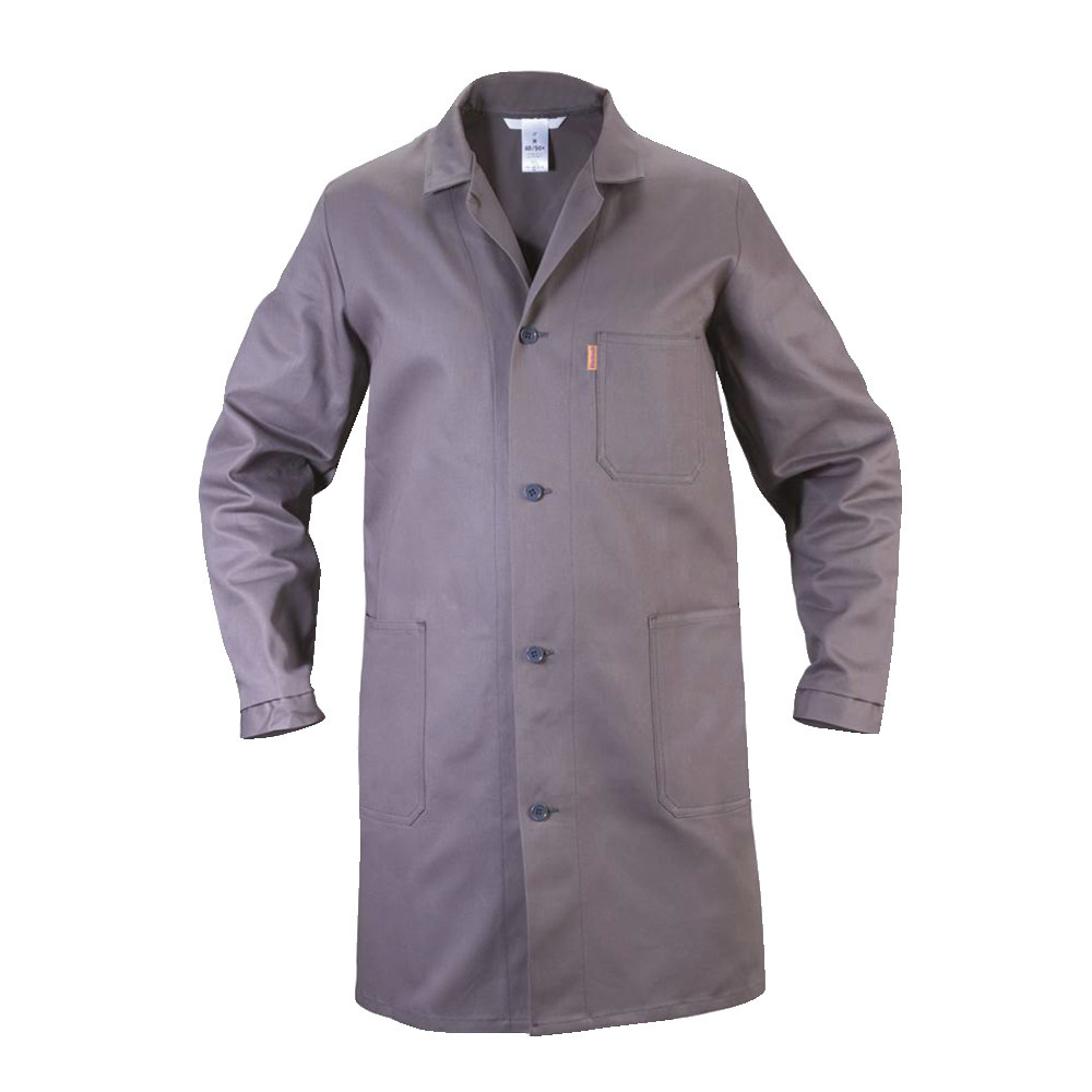 Arbeitsmantel aus 100% Baumwolle, 1 Brusttasche, 2 Seitentaschen mit Knopfverschluss. Größe: 46-62.