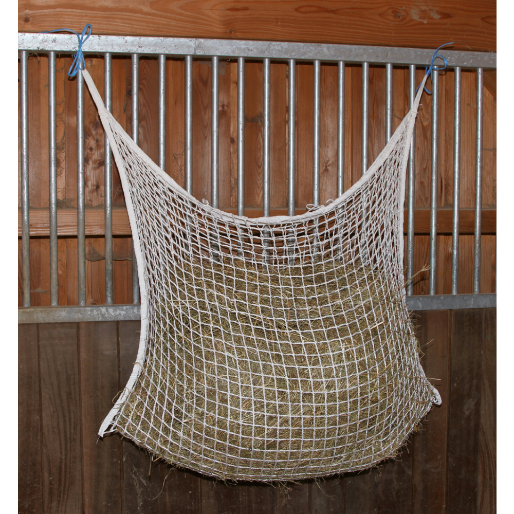 Dieses Heunetz mit besonders enger Maschenweite von 3 x 3 cm lässt Pferde besonders ruhig und entspannt fressen. Durch die kleinen Maschen bekommt das Pferd nur sehr kleine Portionen aus dem Netz und ist in seinem natürlichen Verhalten als Dauerfresser tiergerecht versorgt. Das Heunetz hilft auch bis zu 30 % an Futter zu sparen und kann bis zu 15 kg Futter aufnehmen. Das speziell weiche Material schont das Pferdemaul und ist obendrein extrem reißfest und langlebig. Das Netz kann über mehrere Jahre in allen Wettersituationen eingesetzt werden.Abmessung: 120 x 90 cm