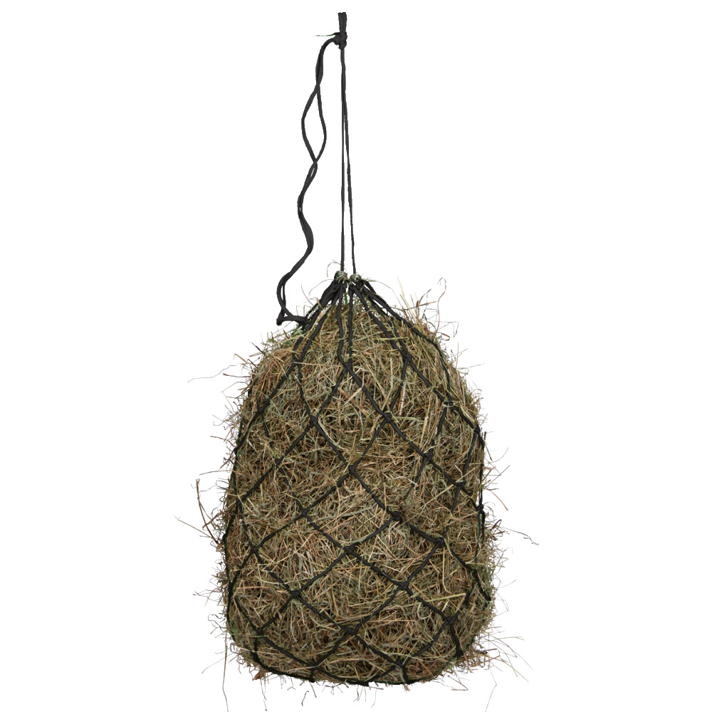 Strapazierfähiges Heunetz mit großen Öffnungen (ca. 9x9 cm). Inklusive 9 Metallringen zum einfachen Befestigen. Material: 100% Polypropylen