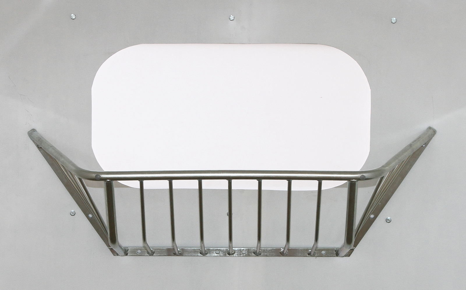 Verzinkte Futterraufe zur Rückwandmontage in Gruppen-Iglus. Stababstand: 75 mm. Maße: 113 x 41 x 38 cm.