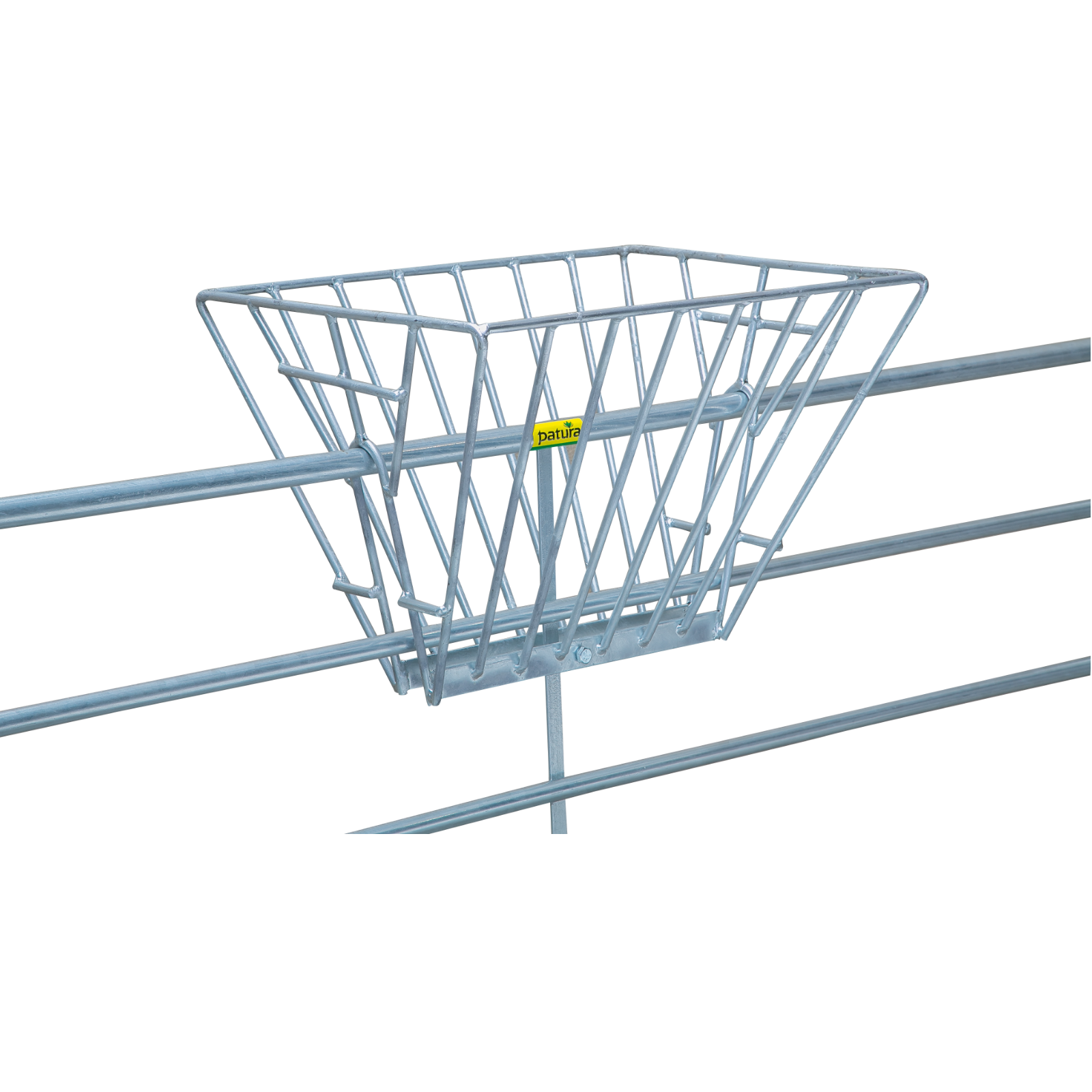 Verzinkte Heuraufe zum Aufstecken auf Abtrennungen bzw. Rohre bis Ø 35 mm. 60 x 50 x 40 cm (LxBxH)