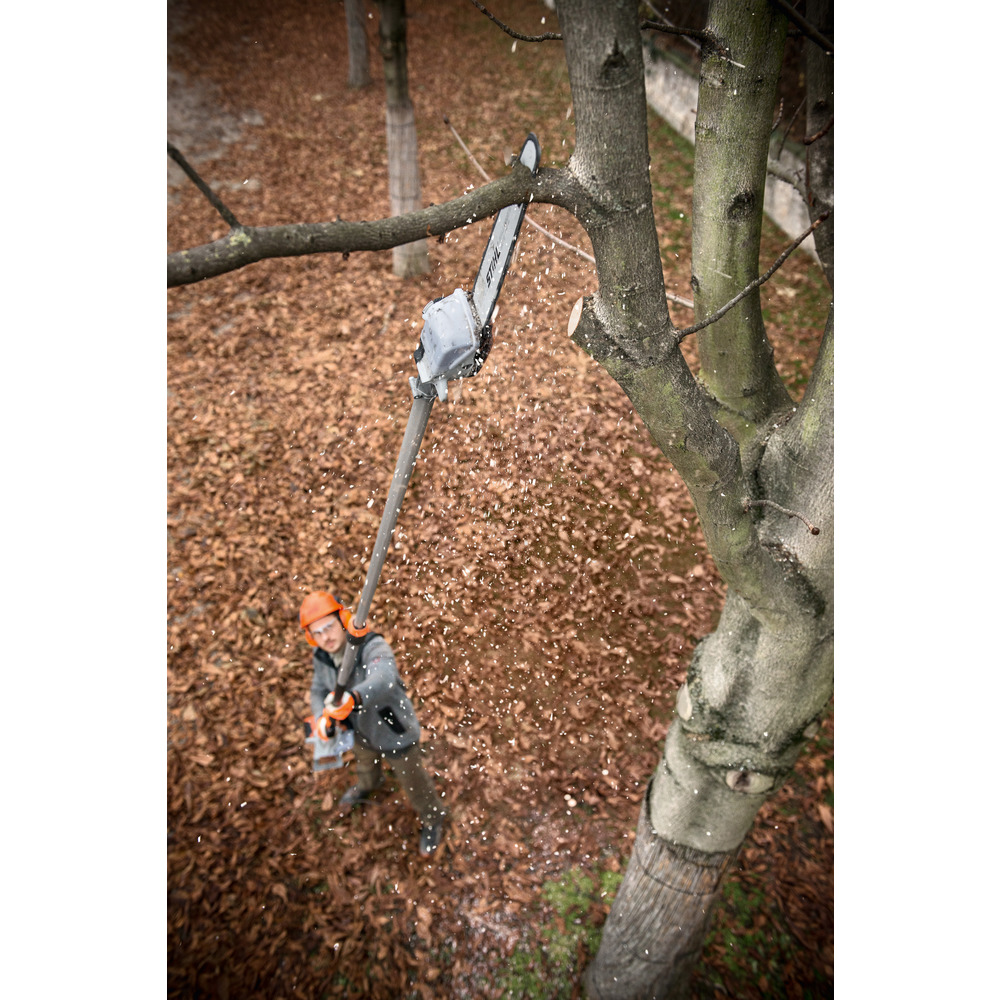 Profi Stihl Hochentaster mit bestem Leistungsgewicht für kraftvolle Schneidarbeiten im Obstbau und in der Baumpflege. Stihl 4-MIX®-Motor mit 1,9 PS mit enormer Durchzugskraft und hohem Drehmoment. Beachtliche Schnittleistung durch 1/4 Zoll-PM3-Sägekette mit 30 cm Schnittlänge , seitlichem Kettenspanner und automatischem Dekompressionsventil. Hohe Ergonomie und Führungssteifigkeit durch gewichtsreduzierten Vierkant-Teleskopschaft mit 270 bis zu 390 cm Gesamtlänge .