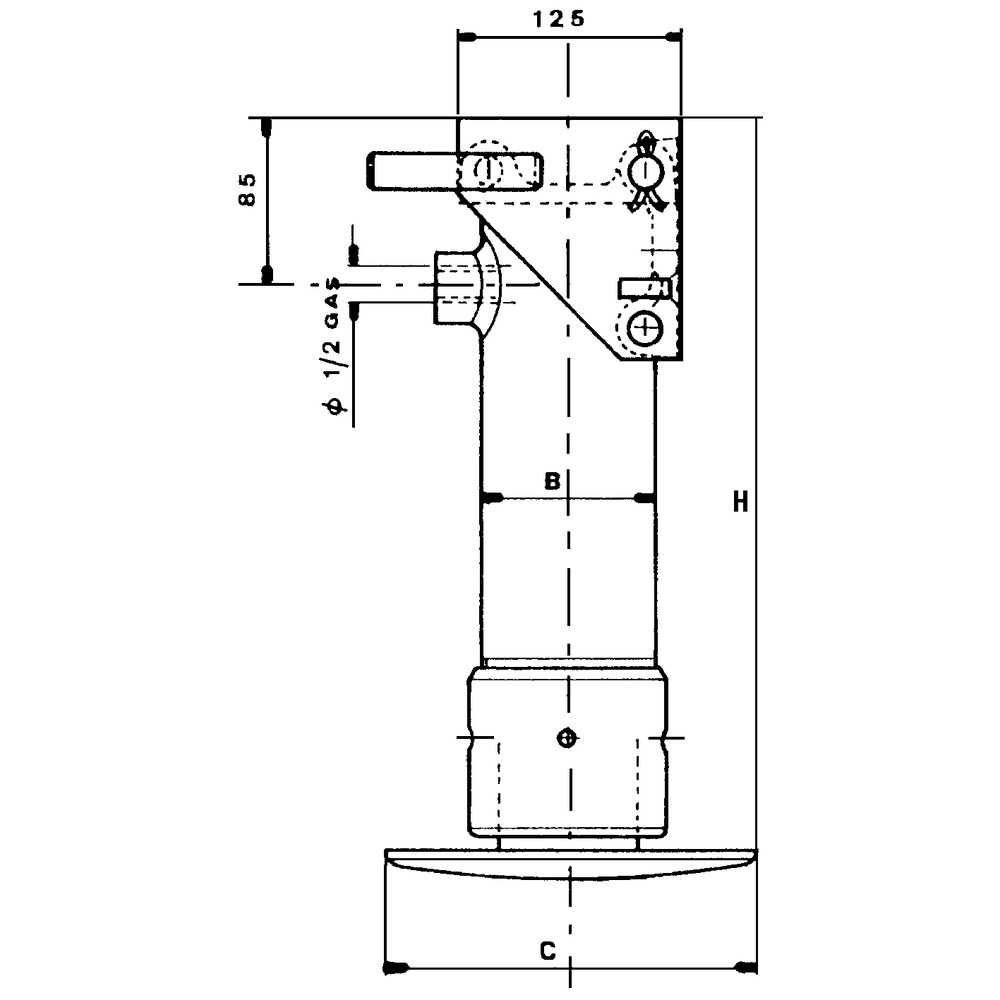 Einfachwirkend mit Rückzugfeder R1/2″, schwenkbar.Hubkraft 100 bar: 5,67 t, 150 bar: 8,5 t.