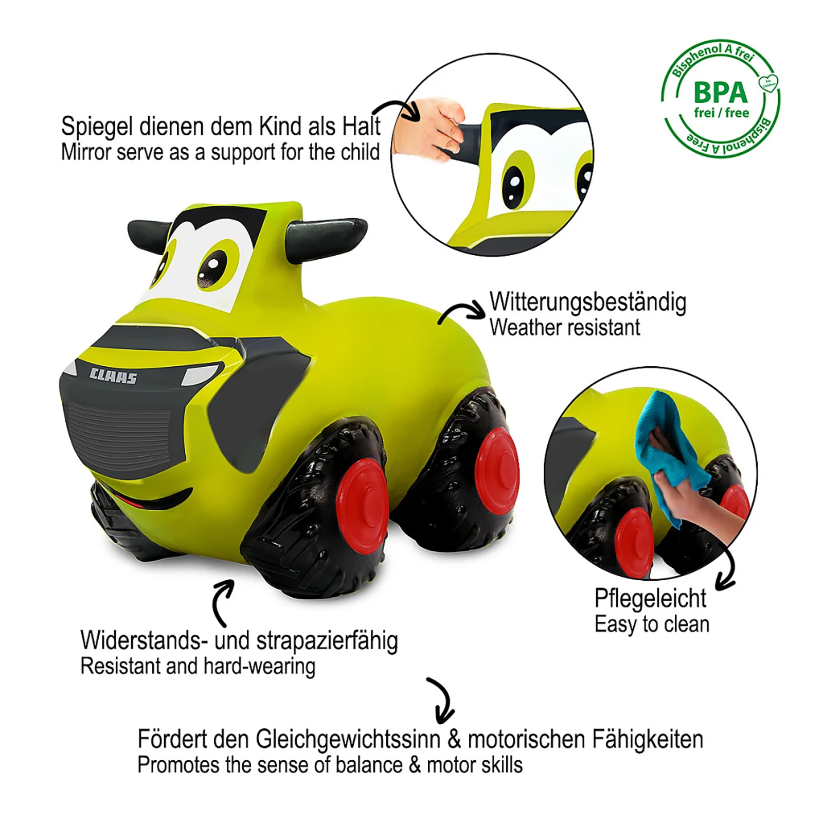 Tierisches Hüpfvergnügen versprechen Jamara´s farbenfrohe Hüpftiere und Fahrzeuge - schon für die Kleinsten. Jede Menge Hüpfspaß und gleichzeitig die Förderung des Gleichgewichtssinns sowie der motorischen Fähigkeiten bieten die pflegeleichten Hüpfgeräte, die mit der beiliegenden Luftpumpe kinderleicht in Form zu bringen sind. Die Außenspiegel des Hüpftraktors dienen zum Festhalten und geben dem Kind einen sicheren Halt. Für die Kleinsten in der Familie hat JAMARA einen Kinderspielklassiker wieder neu aufgelegt. Mit tollen, liebevoll gestalteten Tiermotiven, und Fahrzeugdesigns kommen die neuen Kindergeräte auf den Markt. Ob das bunte Einhorn, der freche Drache oder lieber der treue Hund, oder die coolen Fahrzeuge- viele Möglichkeiten zum Kids begeistern, das müssen sie neben der scheckigen Kuh und dem stolzen Pferd selbst entscheiden. Die Wahl wird sicher nicht einfach. Die Hüpftiere sind allesamt sehr robust und widerstandsfähig, fördern den Gleichgewichtssinn und die motorischen Fähigkeiten gleichermaßen. Also, an den Ohren gut festhalten und wild los hopsen! BPA frei. Mit Luftpumpe. 1800 gOffiziell lizenziertFördert den Gleichgewichtssinn und die motorischen FähigkeitenSeitenspiegel dienen dem Kind als HaltWiederstands- und strapazierfähigPflegeleichtBPA freiSitzhöhe (cm): 24,5 - 27Maximalgewicht (kg): 50Altersempfehlung: ab 12 Monate