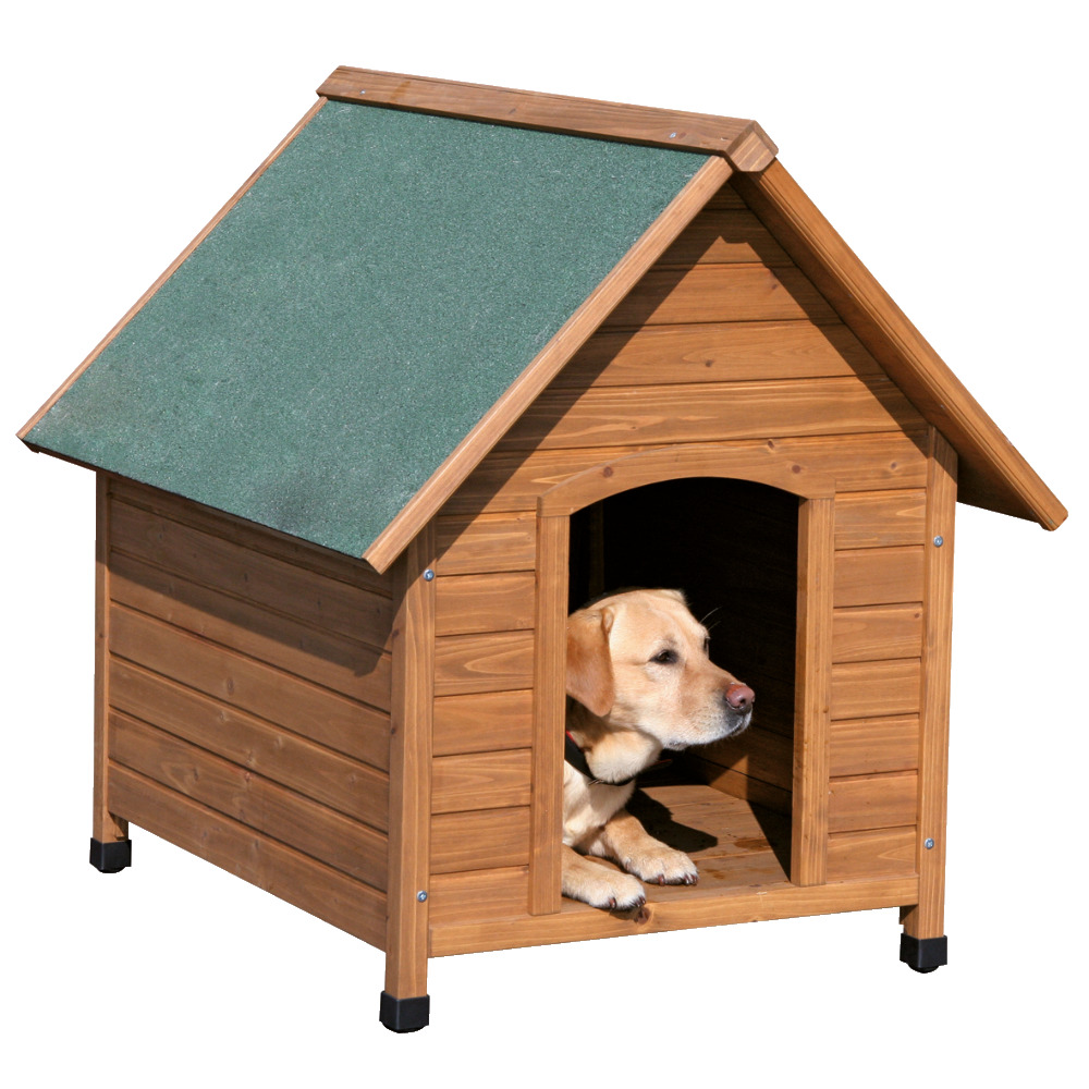 Geräumige Single-Wohnung für den selbstbewussten Familienhund.Die Hundehütte besteht aus lasiertem Kieferholz. Die höhenverstellbaren Kunststofffüße sichern eine gute Standfestigkeit und schützen vor Bodenfeuchtigkeit. Die Hütte ist mit einem wetterfesten Bitumendach ausgestattet.Die Lieferung erfolgt zerlegt im Karton inkl. Aufbauanleitung.Maße (L x B x H): 100 x 88 x 99 cm