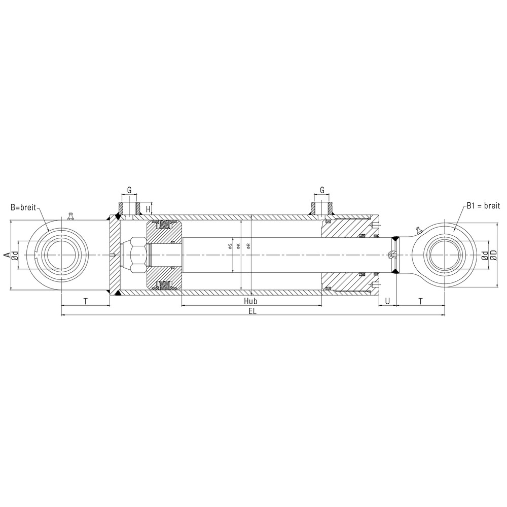 Produktinformationen "Hydraulikzylinder Kolben-Ø K= 60 mm, Kolbenstange-Ø S = 40 mm"