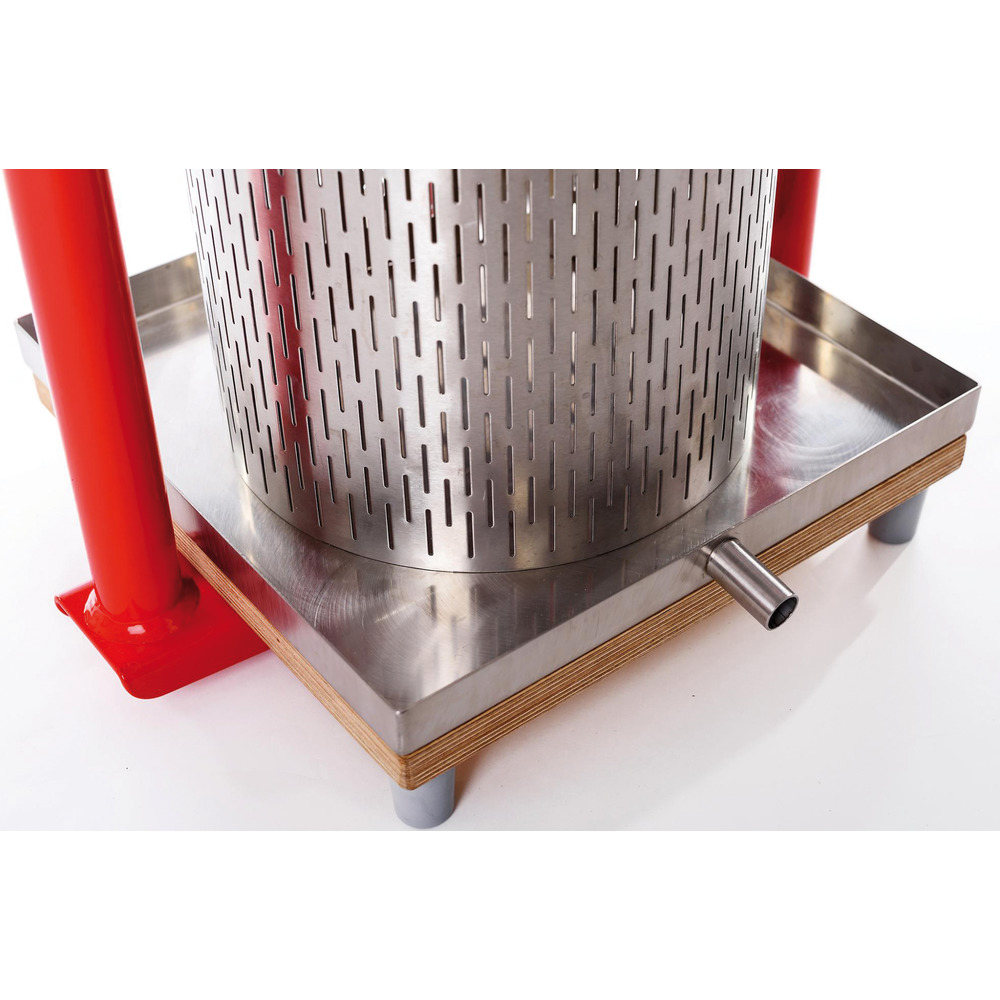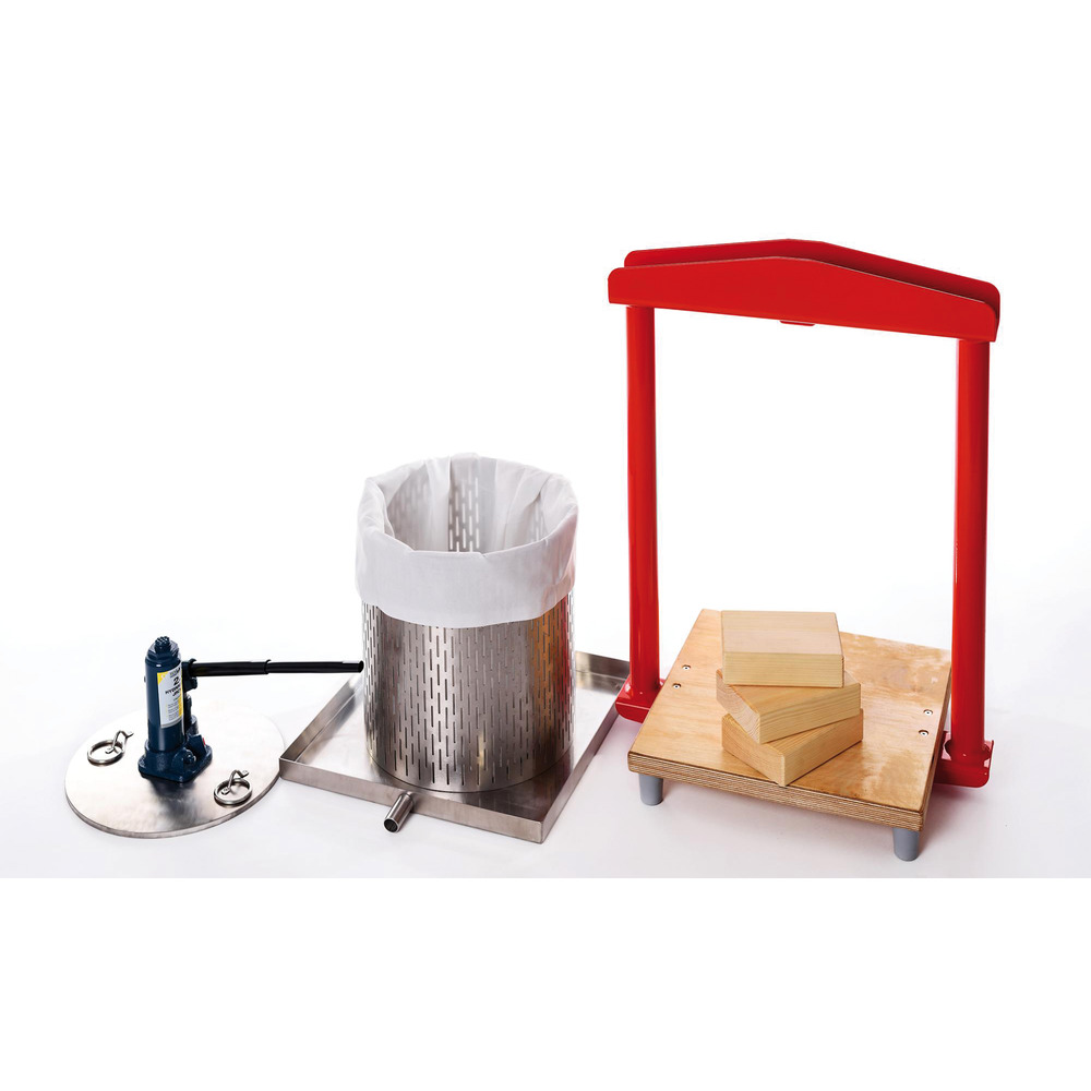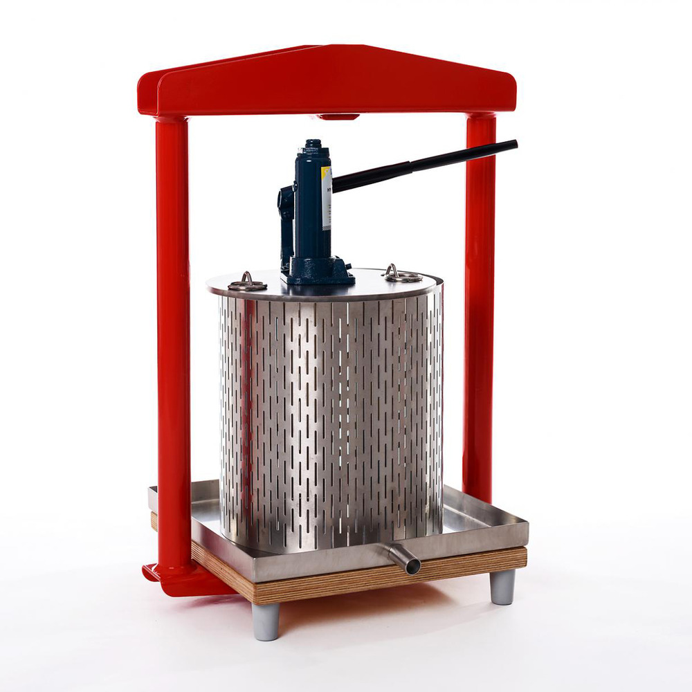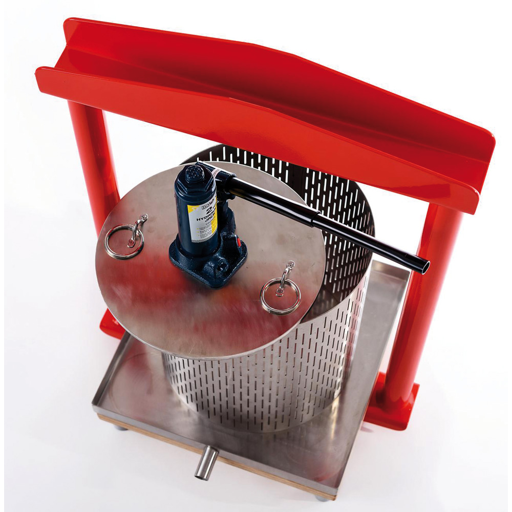 Sehr stabile hydraulische Obstpresse. Auch geeignet als Beerenpresse. Korb, Abtropfwanne und Pressscheibe aus Edelstahl. Massives pulverbeschichtetes Stahlgestell. Inkl. Hydraulikzylinder, Filtertuch und Beilagehölzer Technische Daten:Ausführung 12 Liter: 35x45x61 cm, Presskorb 250x240 mm (ØxH), 25 kg, Hydraulikstempel 2 tAusführung 26 Liter: 40x48x64 cm, Presskorb 305x330 mm (ØxH), 30 kg, Hydraulikstempel 2 tAusführung 50 Liter: 45x55x84 cm, Presskorb 355x500 mm (ØxH), 40 kg, Hydraulikstempel 5 t