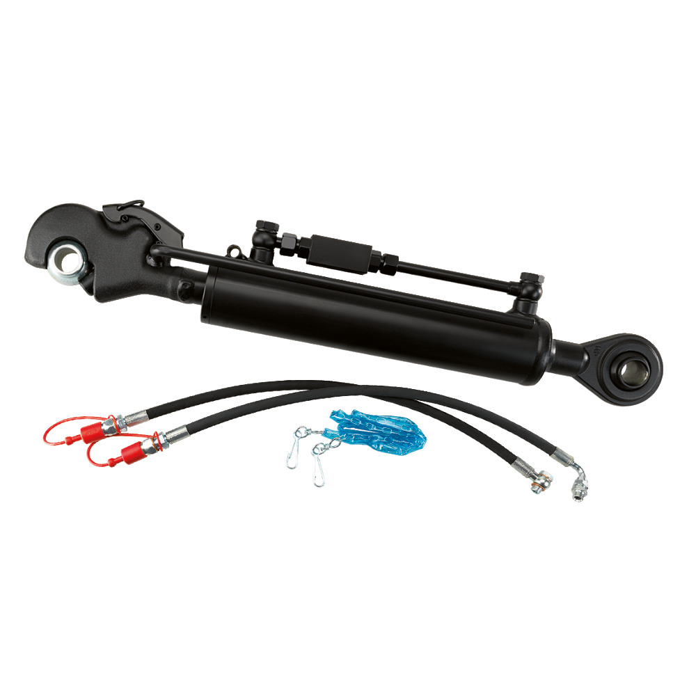 Oberlenkerkugel Kat 3/2 (25,4mm), Kugelauge Kat. 2 (25,4mm)Komplett mit Anschlussschläuchen, Steuerkette für Fanghaken, Oberlenkerkugel Kat.3/2 (25,4mm) und Hubanzeige. Inklusive hydraulisch entsperrbarem Rückschlagventil (Sperrblock). Kolben-Ø K = 70mm, Kolbenstange-Ø S = 36mm, bis ca. 140PS, Druckkraft 6927kg, Zugkraft 5195kg.Die angeführten Längenangaben beziehen sich immer auf Bolzenmitte zu Bolzenmitte!