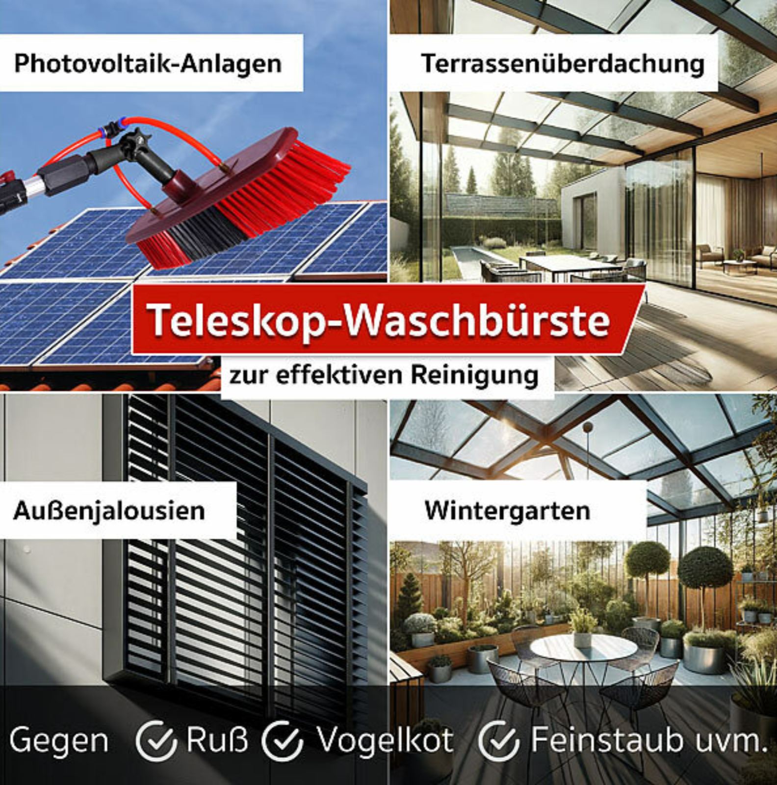 Zur Reinigung von Solaranlagen, Terrassendächern, Wintergärten