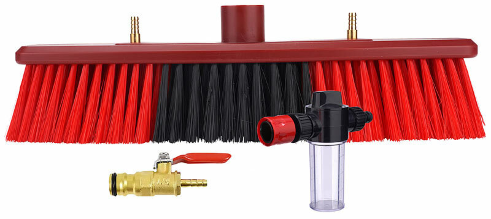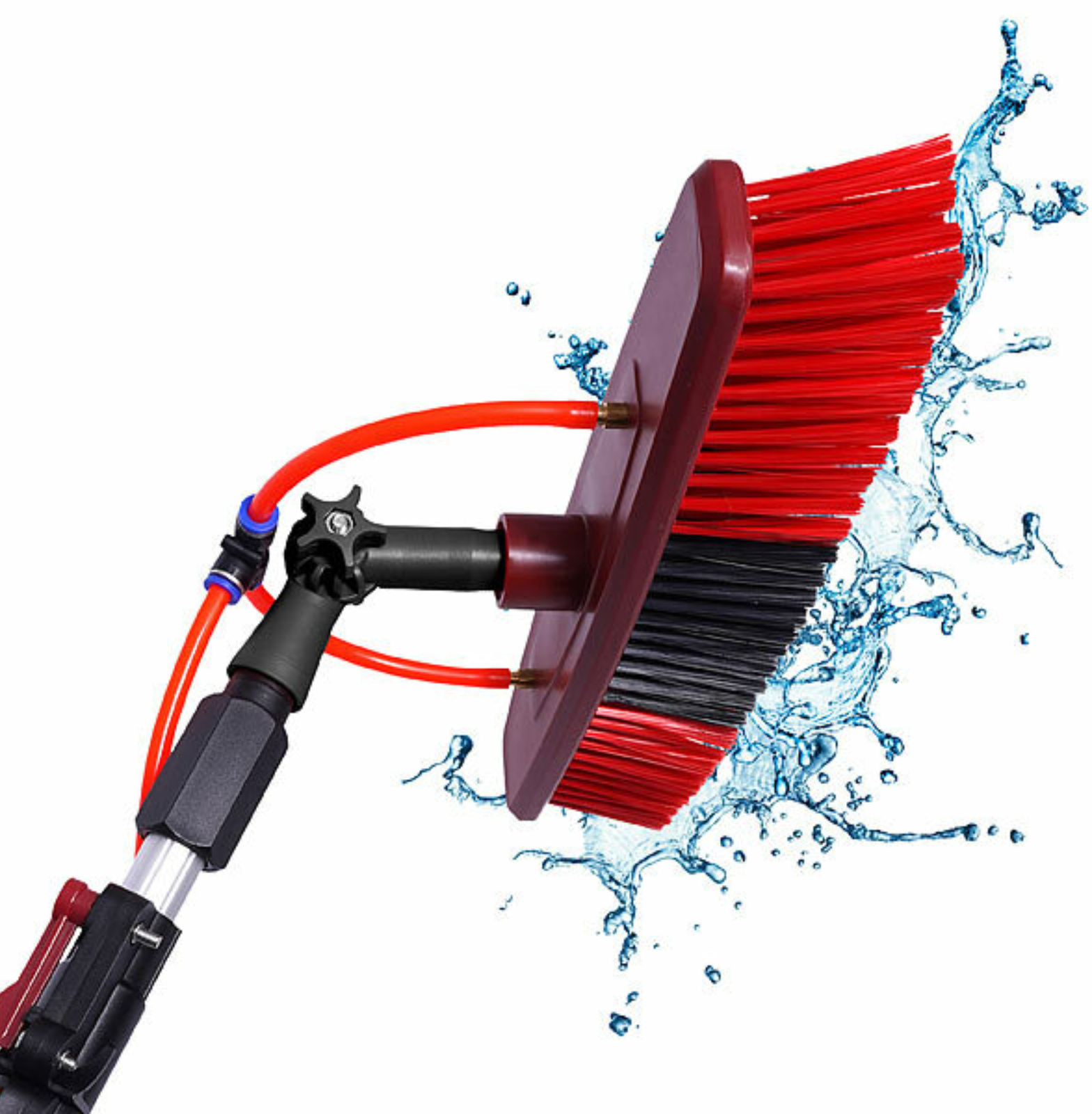 - Integrierter Wasserschlauch mit 2 Auslässen am Bürstenkopf