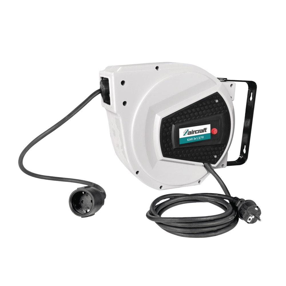 Schwenkbar über stabile Wand- bzw. Deckenaufhängung, durch einfaches Ziehen kann das Kabel arretiert oder nach Wunsch automatisch aufgerollt werden. Serienmäßig mit thermischer Überlastsicherung.