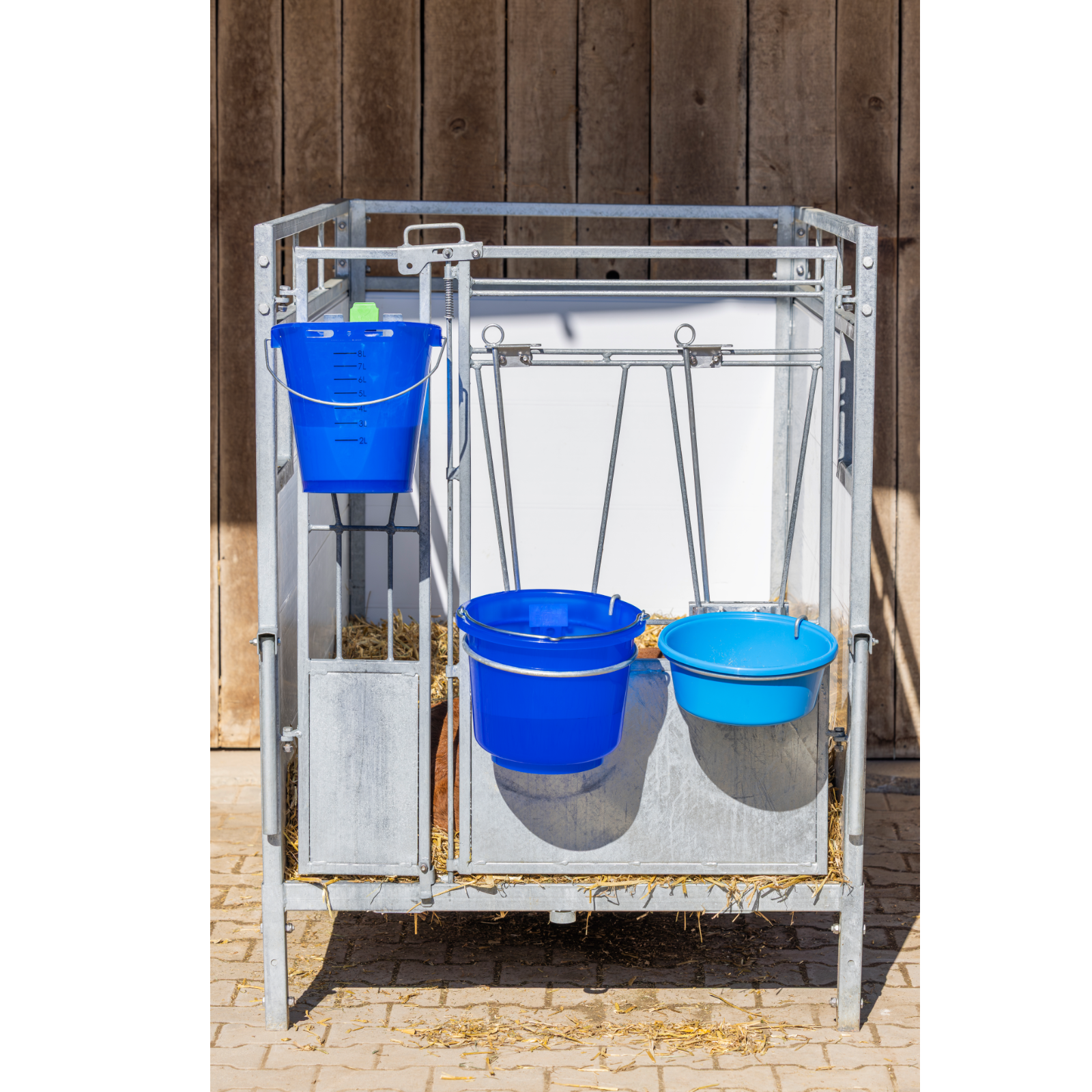- inkl. einer Tränkeeimerhalterung und zwei klappbaren Eimerhalterungen