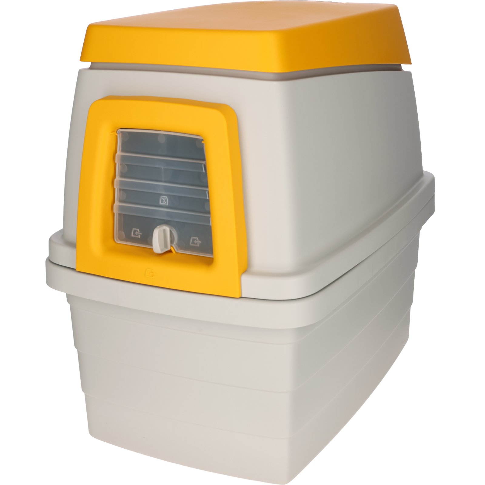 flexible4-Wege-Türe (je nach Einstellung können die Tiere nur hinaus, nur hinein, hinaus und hinein oder die Türe bleibt verschlossen)