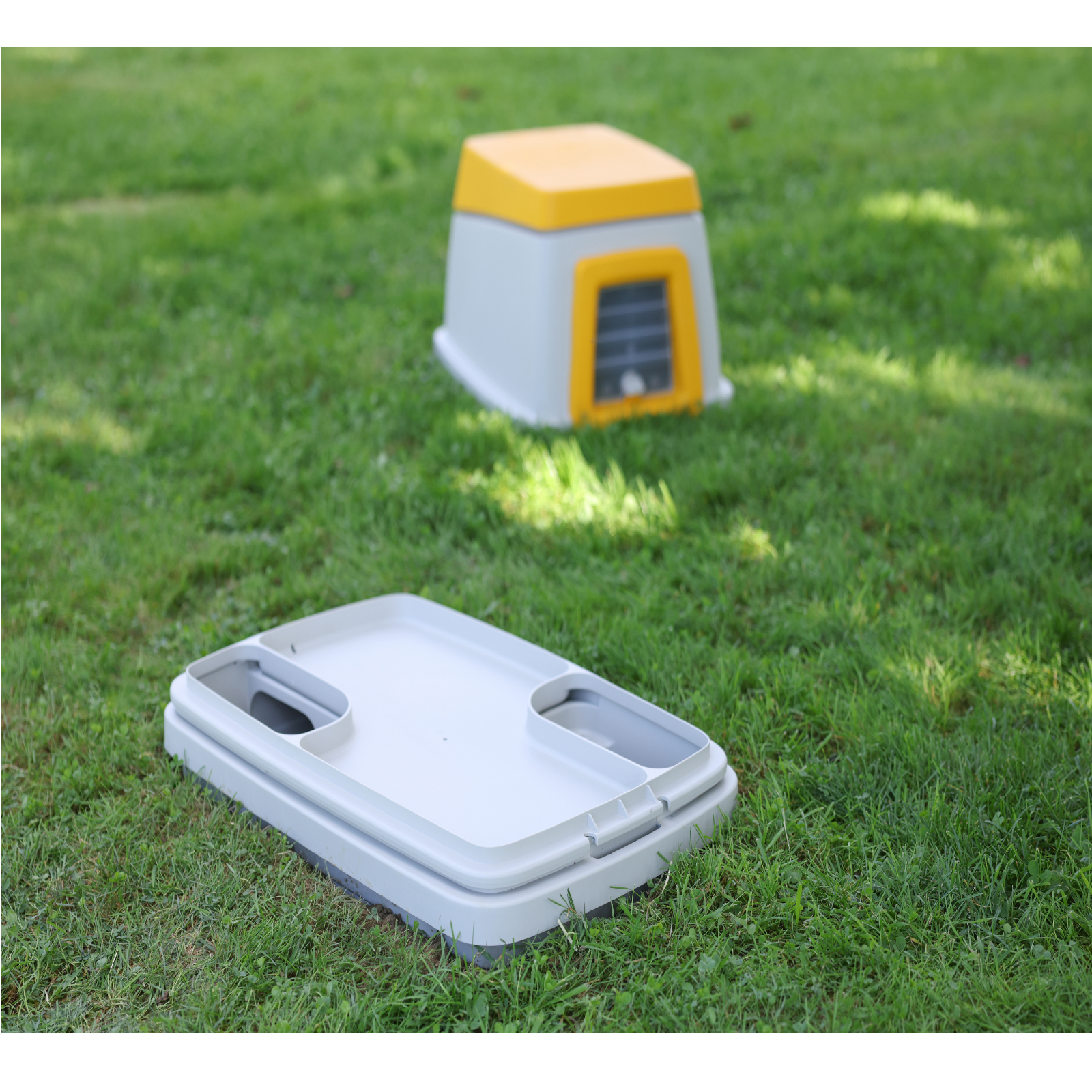 zusätzlicherZwischenboden ermöglicht Nutzung des Oberteils als Unterschlupf an einem anderen Ort oder als Transportbox für unterwegs (z. B. für einen Tierarztbesuch oder die Fahrt zur Ferienunterkunft)