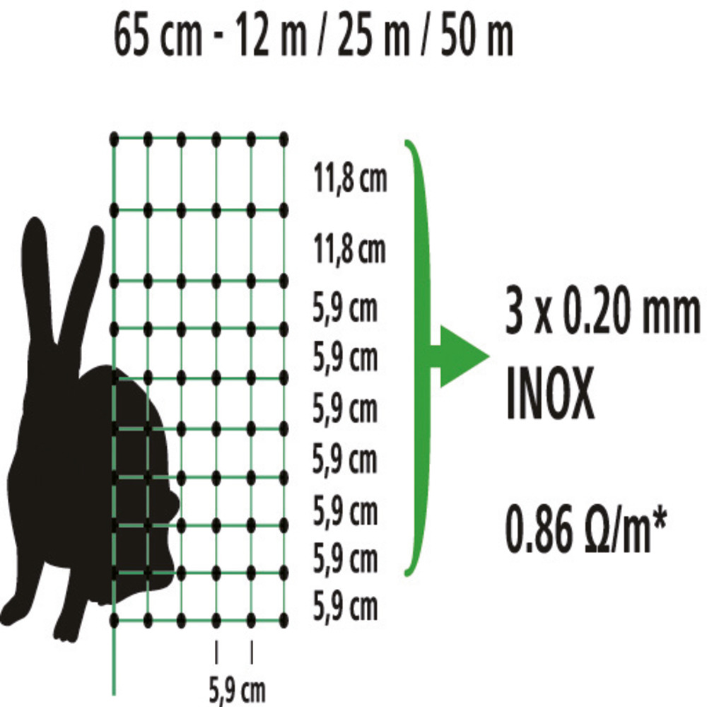 Elektrifizierbar! Netzhöhe 65 cm, Stromführung waagrecht mit 3 x 0,20 mm Niroleiter je Litze, für die Stromversorgung: an jedes starke Netz- oder Batteriegerät anschließbar. Extra kleine Maschenweite 5,9 cm gewährleistet höchste Hütesicherheit!Der beste Standplatz ist unter einem Vordach an der Wetter abgewandten Seite.Achten Sie bei der Auswahl der richtigen Größe auf die länderspezifischen Tierschutznormen!