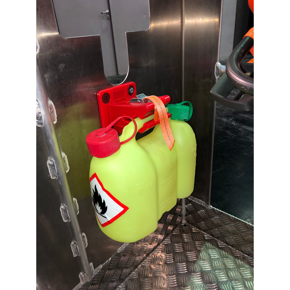 TOOLPROTECT K2 - Hat alles fest im Griff! Universal Kanisterhalter, passend zu vielen gängigen Kombi-Behältern, inklusive Montageset und Sicherungsgurt!