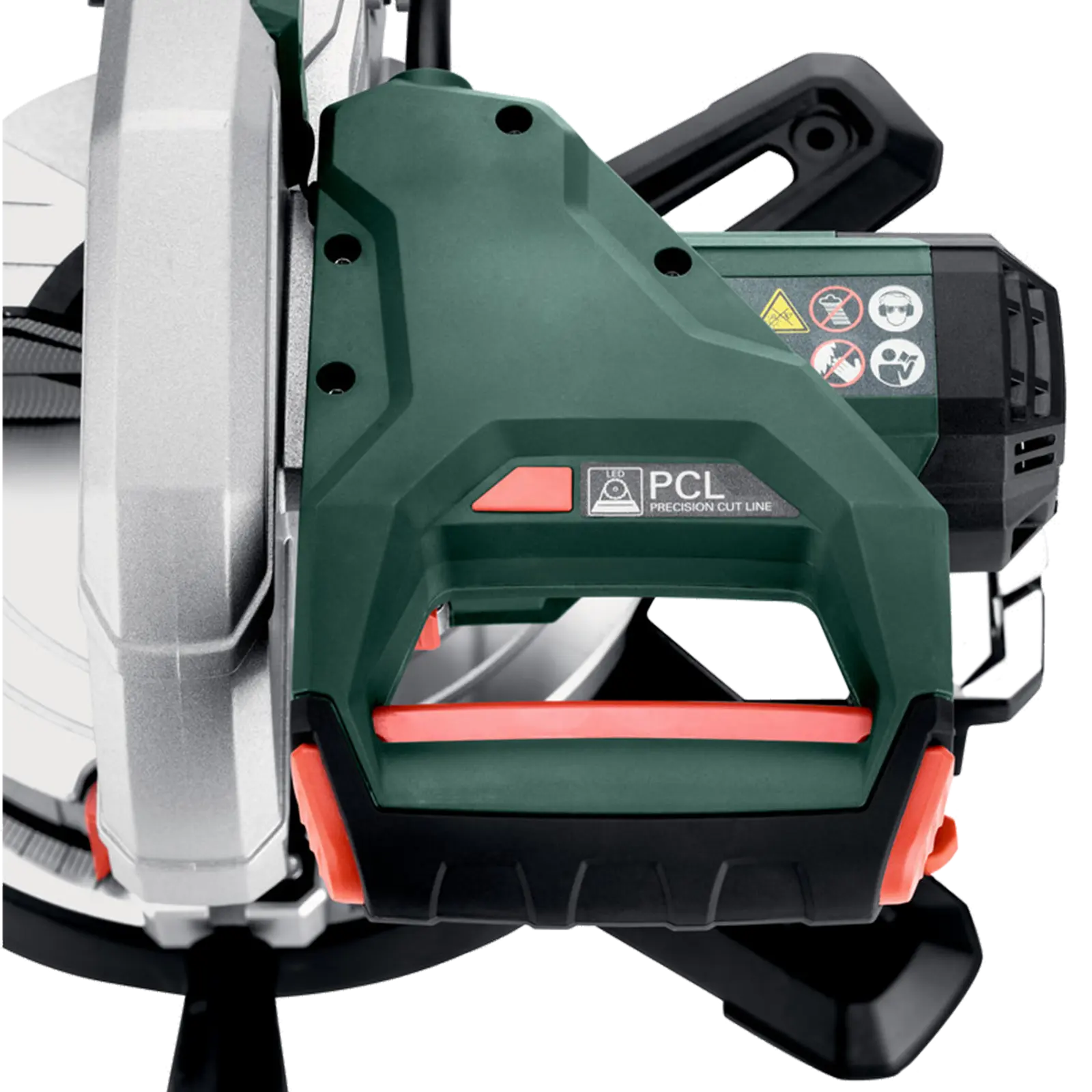 Kompakte Kapp-und Gehrungssäge mit kräftigem 1.100 Watt Motor.Schnittbereich bei 90° 120 x 60 mm bzw. 80 x 45 cm bei 45°, Drehteller jeweils 47° drehbar, Sägeblattneigung 47° links bzw. 2° rechts für exakte Gehrungsschnitte.HM-Sägeblatt 216 x 3 x 40 Z. Durch kompakte Abmessung ca. 47 x 46 x 48 cm und nur 8,7 Kg optimal mobil einsetzbar.