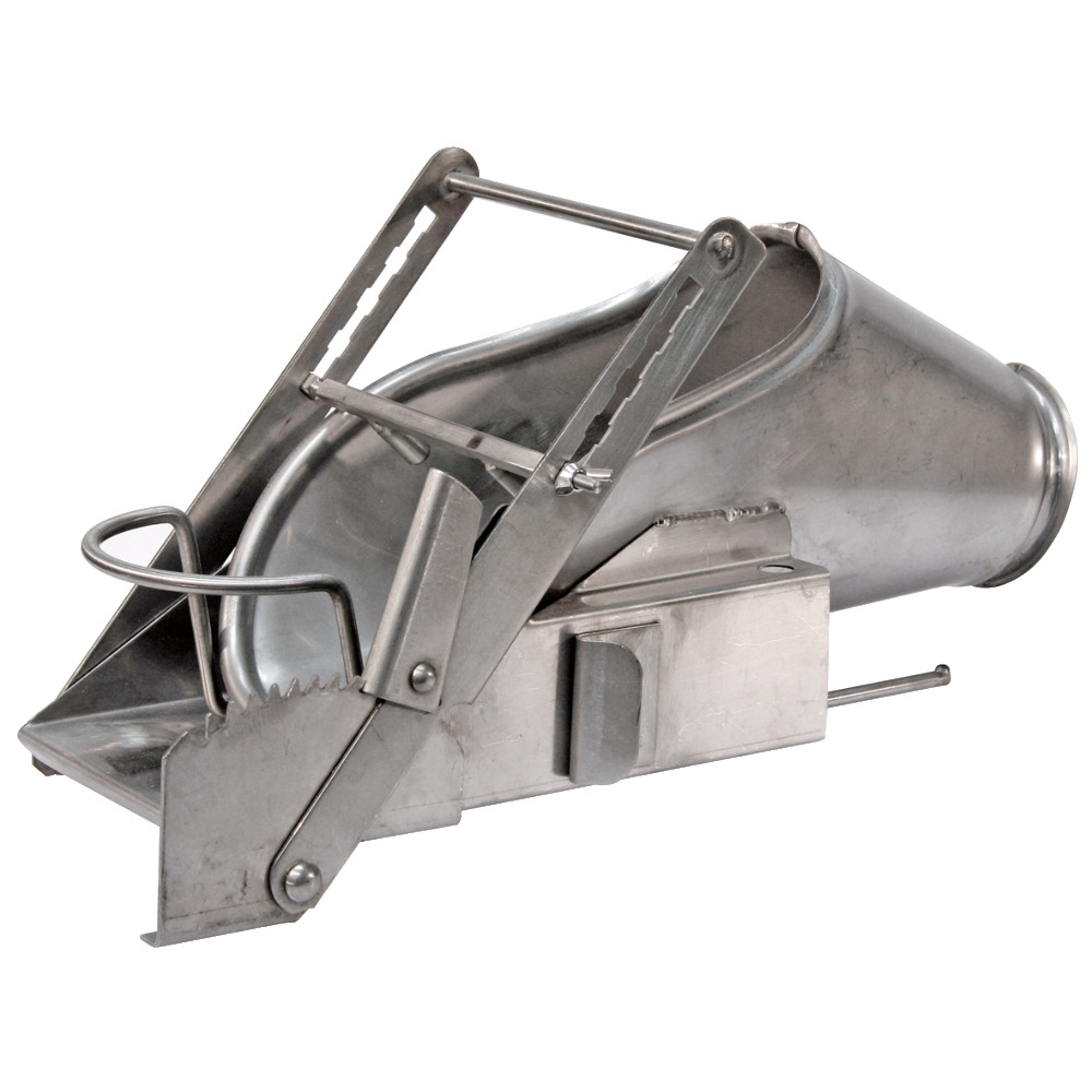 Für die Montage auf die Zwischenwand im Abferkelstall. Das Ferkel wird auf dem Rücken liegend mit dem Kopf nach vorn in das Gerät gelegt, durch Anbringen einer Klemme in Richtung des Kopfes werden die Hinterpfoten fixiert und die untere Körperhälfte gespannt, die Kastration kann nun von einer Person vorgenommen werden. Auch für andere Eingriffe verwendbar. Hygienisch und leicht zu reinigen, da ganz aus Edelstahl. Halterung (Nr. 74406) nicht im Lieferumfang enthalten. Bitte lokale Tierschutzbestimmungen beachten!
