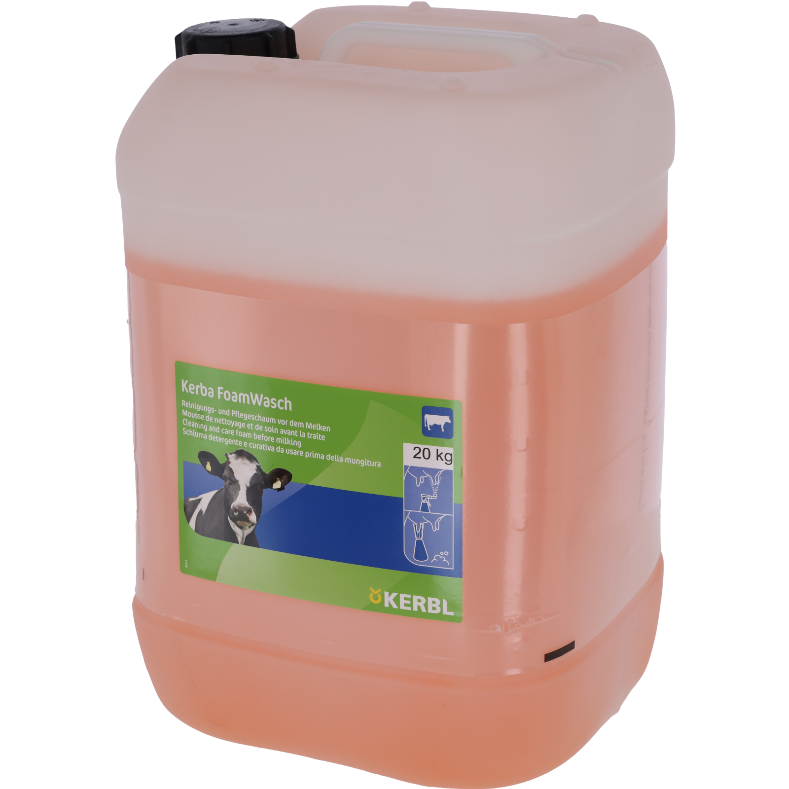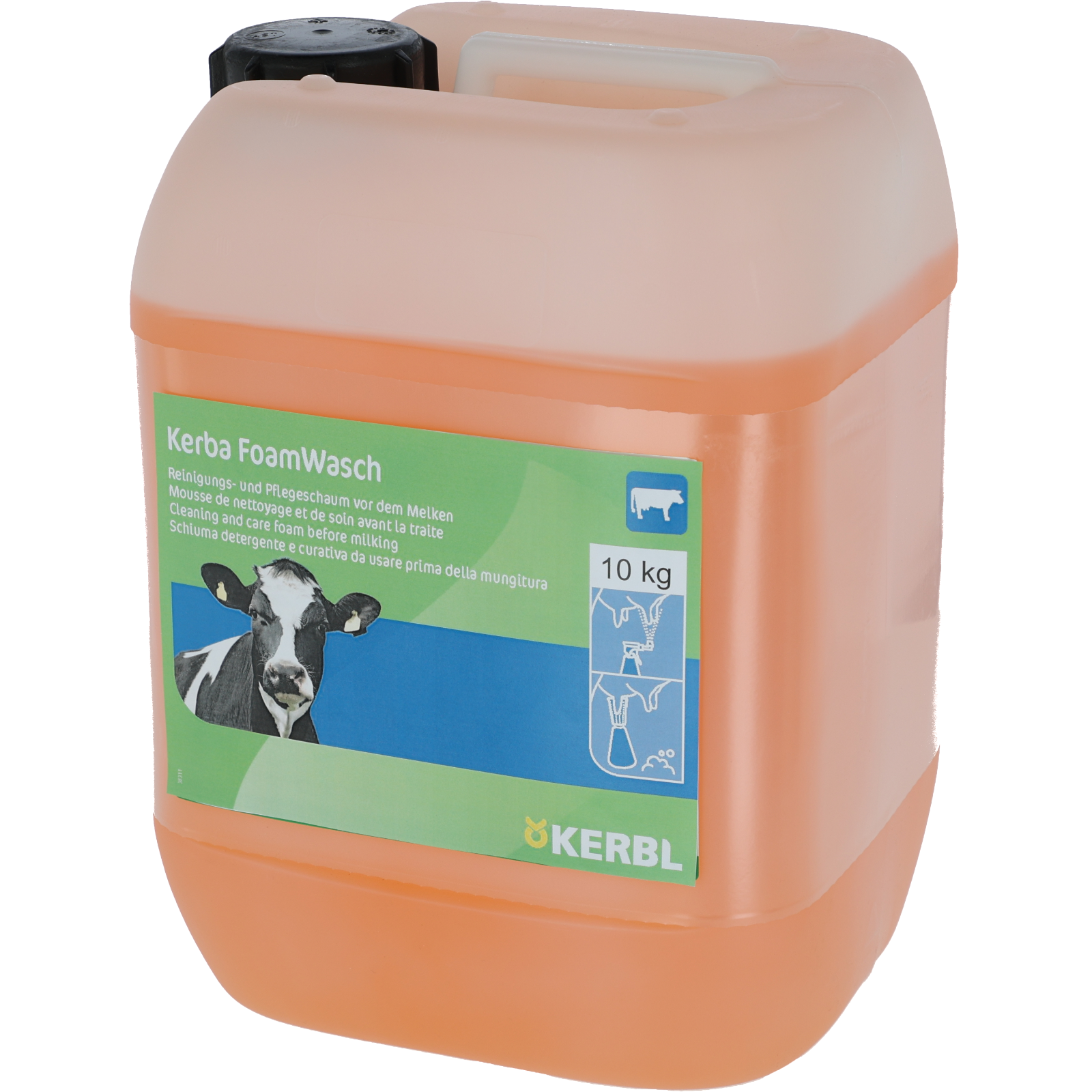 Effektive Reinigung auf Milchsäure-Basis: Kerba FoamWasch ist ein hochwirksamer Reinigungs- und Pflegeschaum für Euter und Zitzen vor dem Melken. Der Schaumdip auf Milchsäurebasis wirkt effizient gegen Keime und Bakterien.