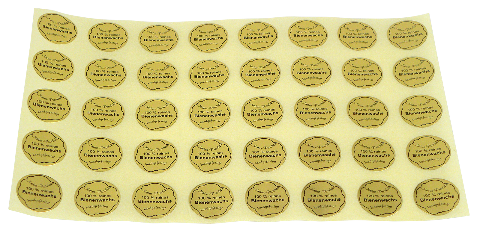 Diese vorgedruckten, goldenen Siegel verleihen Ihren Honigwachs Produkten ein edles Erscheinungsbild und heben damit deren Besonderheit hervor.