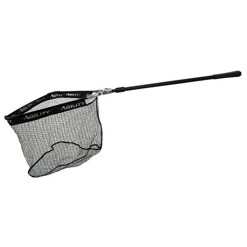 Hochwertige Unterfangkescher mit gummierten Netz und mit einer teleskopischen Kescherstange und einem Gummigriff. Größe LargeTeleskopstiel 1,8 Meter Gesamtlänge, Bügellänge 60x60cm, Netztiefe 45cm