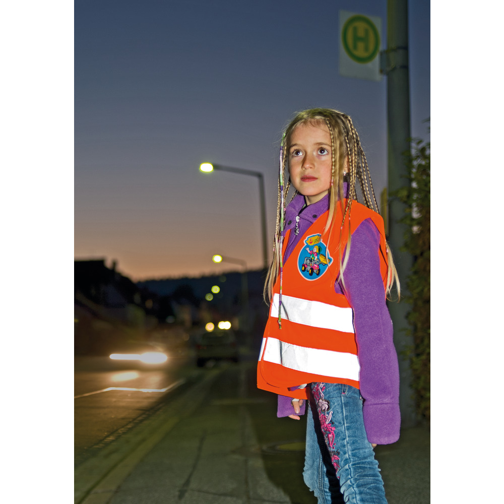 Die Kinder-Sicherheitsweste bietet den Kleinen mehr Schutz im Straßenverkehr. Mit Klettverschluss. Farbe: fluoreszierend orange.