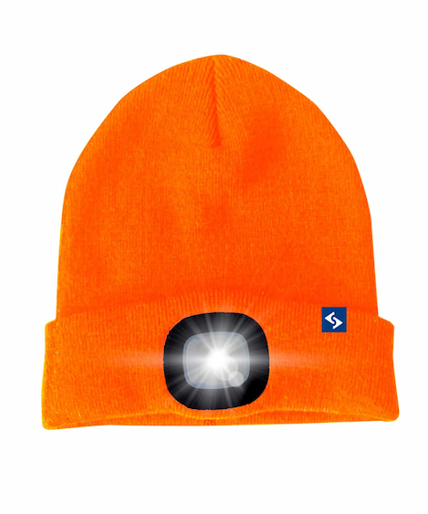 Komfortable Mütze mit abnehmbarer LED-Frontleuchte, wiederaufladbar über einen USB-Stecker. Mit 3 verschiedenen Helligkeitsstufen: sehr hell-mittel-Blinklicht. Strahlweite: ca. 10 Meter, Helligkeit 1 20 Lumen. Einheitsgröße. Material: 100% Polyacryl.