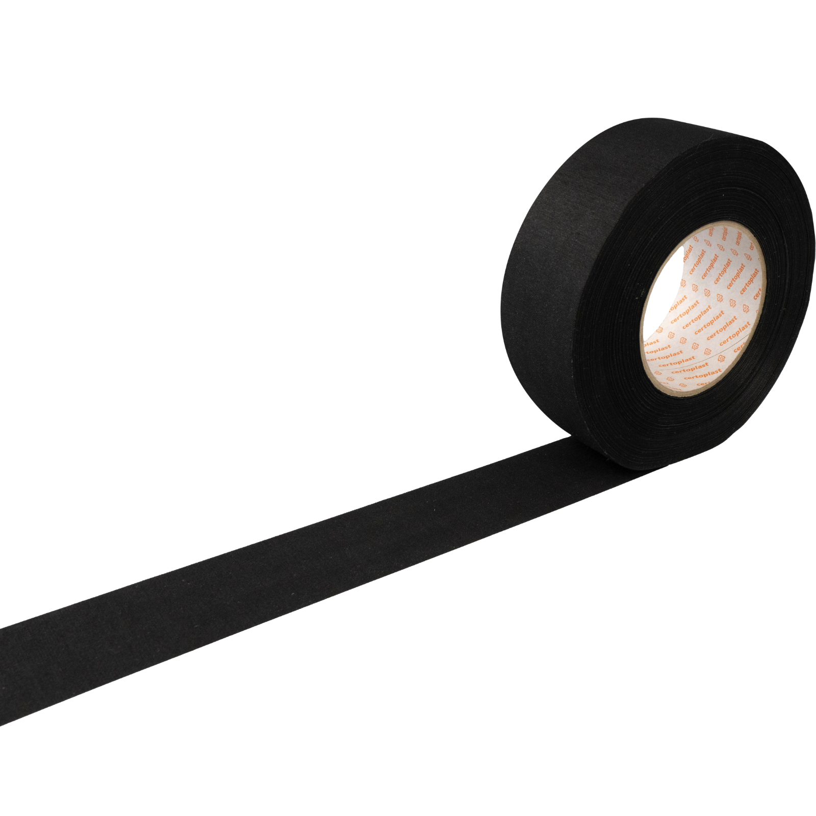 Hochwertiges schwarzes Viskosegewebe, kombiniert mit einem besonders stark haftenden Haftklebstoff auf Synthesekautschuk-Basis.