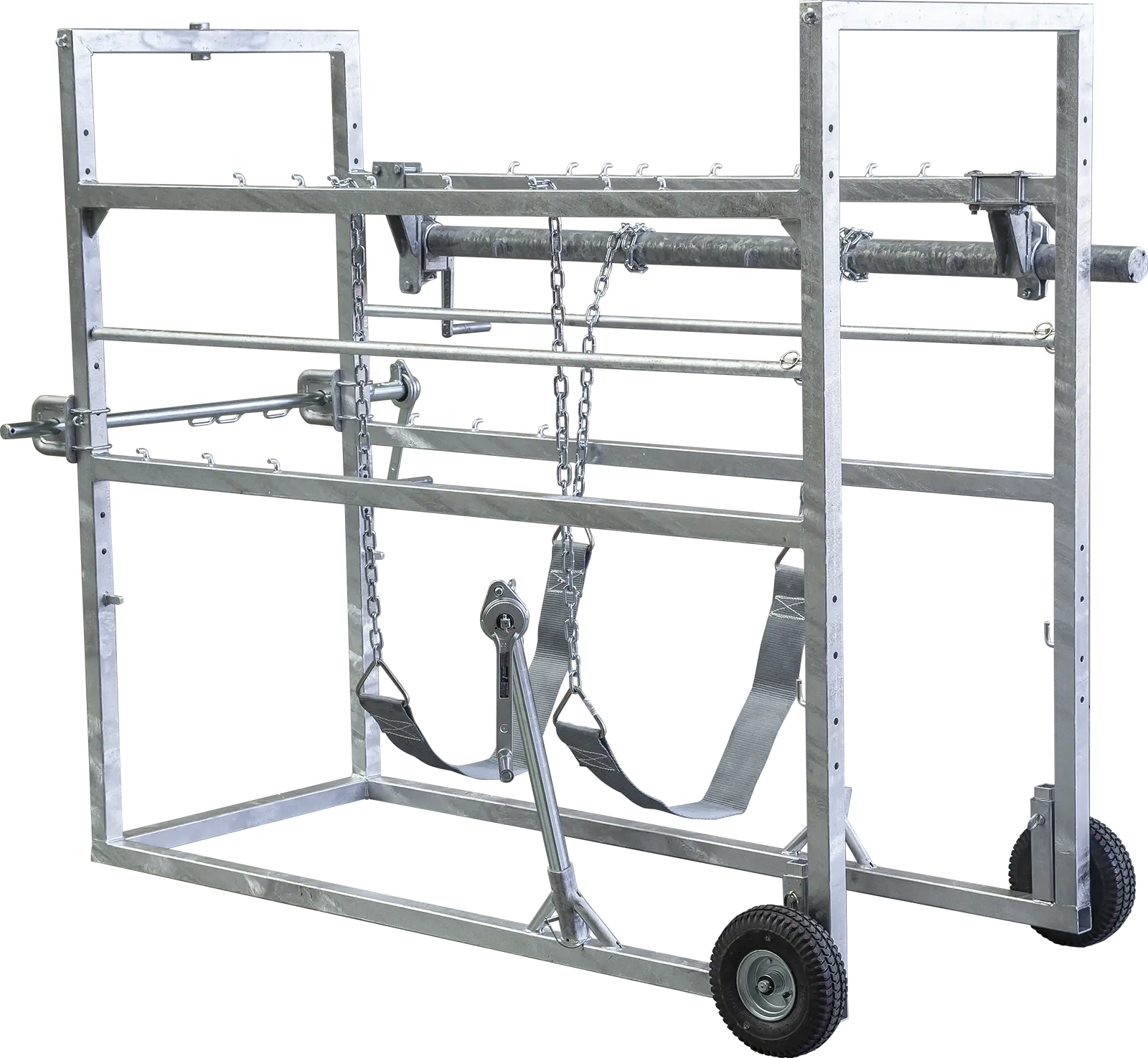Der preisgünstige Überschiebestand für kleinere bis mittlere Milchviehbetriebe wird ohne Boden, aber mit Fahrwerk geliefert und eignet sich für die Klauenpflege am Anbindeplatz,am Selbstfang-Fressgitter bzw. in der Liegebox. Er ist komfortabel mit 3 selbsthemmenden, rückschlagfreien Winden ausgestattet.