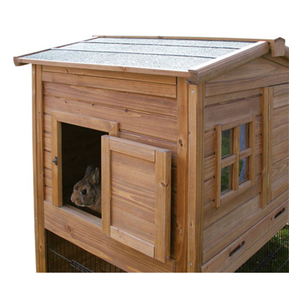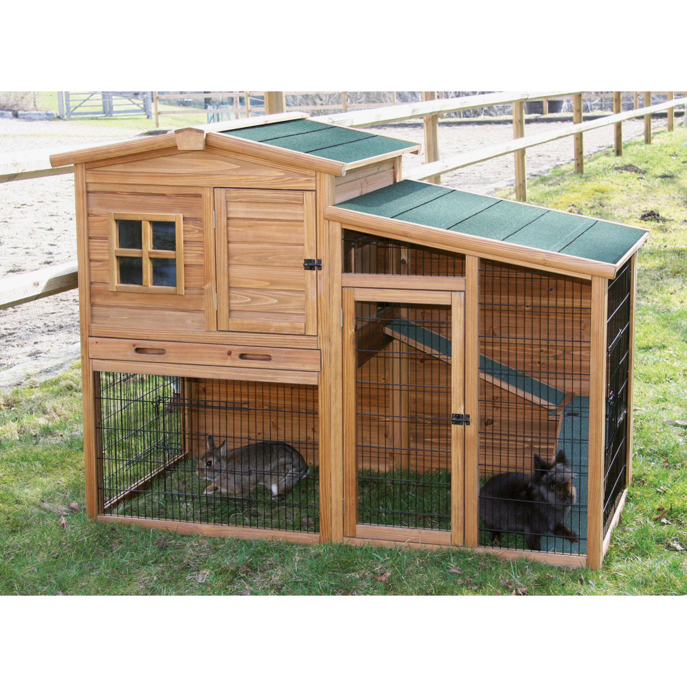 Großzügiger Kleintierstall inkl. Unterfreilauf und angebautem Gehege. Aus hochwertiger Spießtanne, mit Holzschutzfarbe lasiert. Wetterfestes Bitumendach mit Dachfixierung, mit hochwertigem Gitter. Die hohe Kunststoffwanne zum Herausziehen erleichtert die Reinigung. 4 Türen sind getrennt von einander zu öffnen.Lieferung erfolgt zerlegt in 2 Kartons, inkl. Aufbauanleitung, einfache Montage durch Stecksystem. Maße: (L x B x H) 160 x 80 x 117 cm Um die Lebensdauer des Hasenstalls zu verlängern, sollten Sie das Holz mit geeignetem Anstrich nachbehandeln. Der beste Standplatz ist unter einem Vordach an der Wetter abgewandten Seite. Achten Sie bei der Besatzdichte auf die länderspezifischen Tierschutznormen! (Legehennen ca. 3-4 Tiere, Kaninchen 2 Tiere)